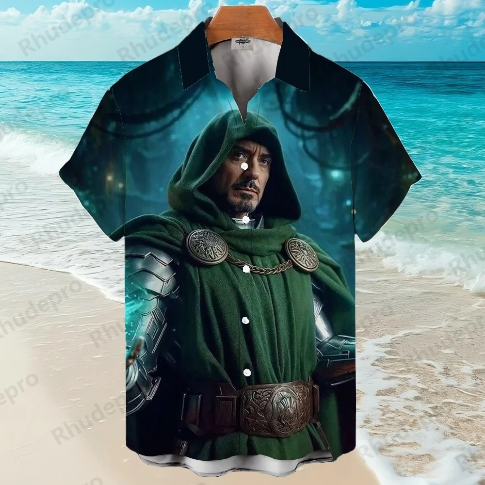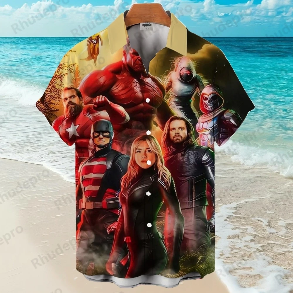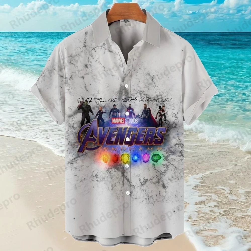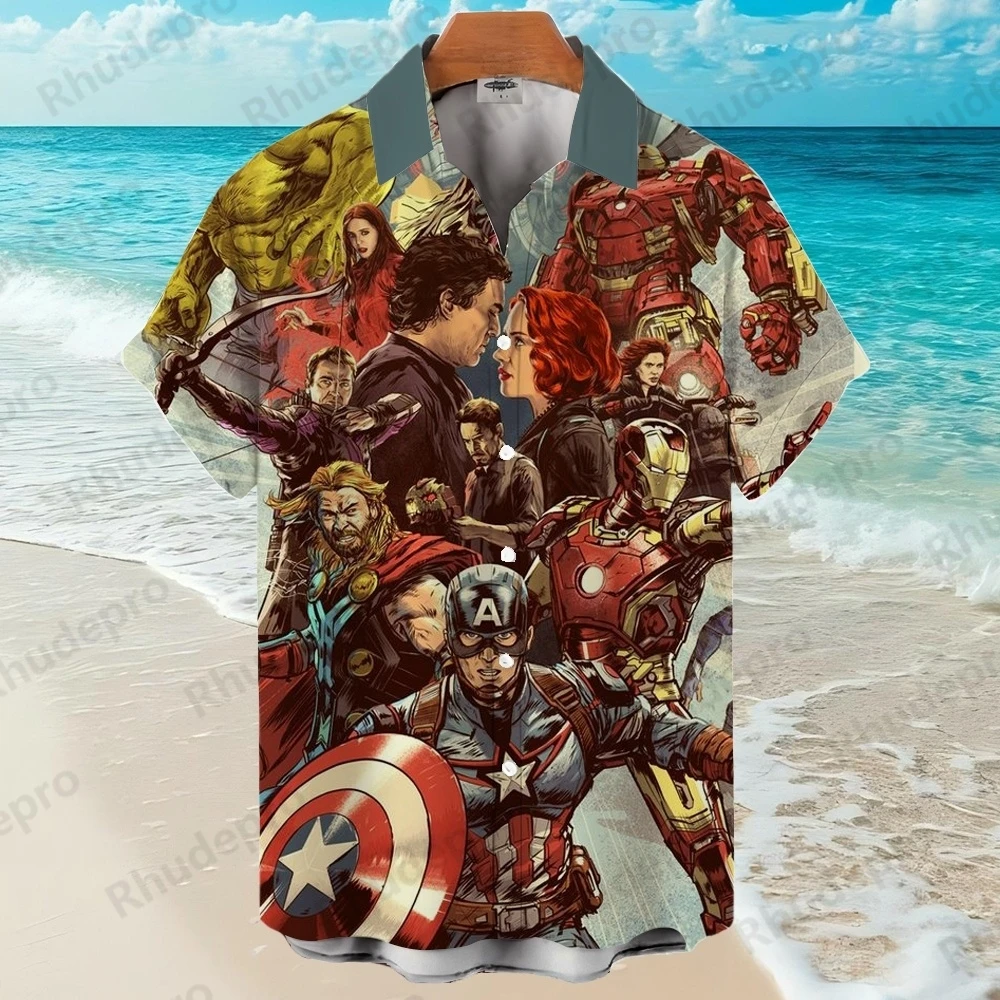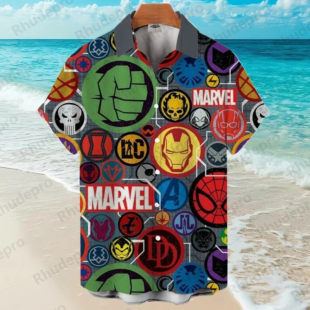 - > Disney 2025 homem-aranha os vingadores dos desenhos animados camisa havaiana impressão lapela masculina manga curta única camisa casual na moda versátil