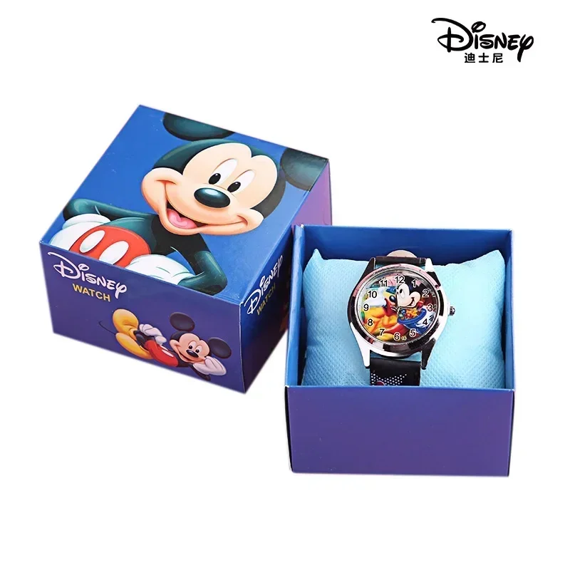 Disney mickey relógio infantil, presente de desenho animado para meninos e meninas com caixa de brinquedo, relógio de quartzo requintado, presentes para festa de aniversário infantil