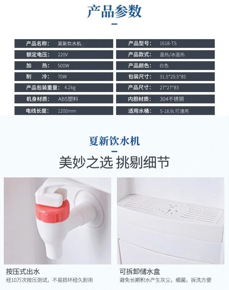 - > Distribuidor de água Amoi 220V Home Office Economia de energia refrigerador de água quente e fria WAB