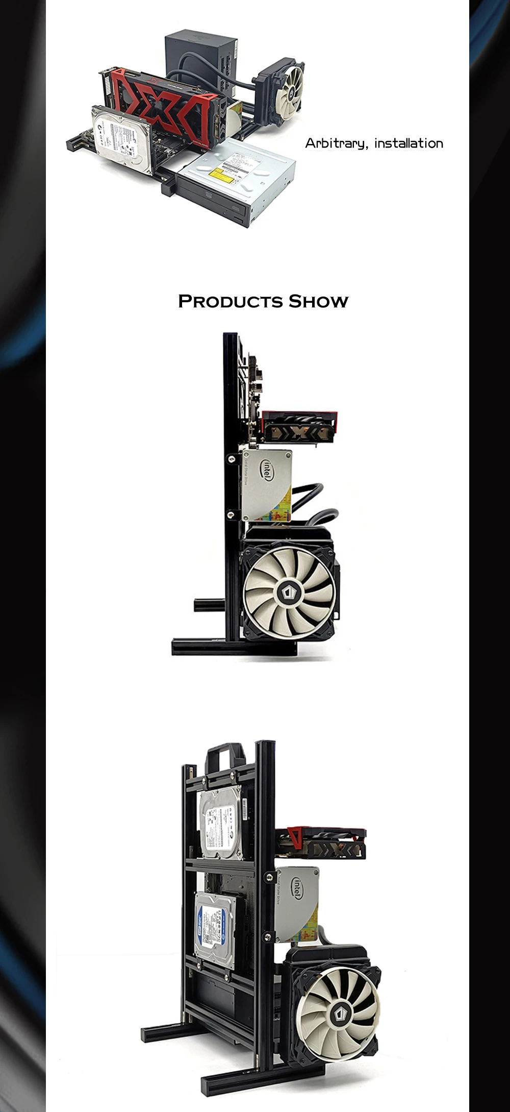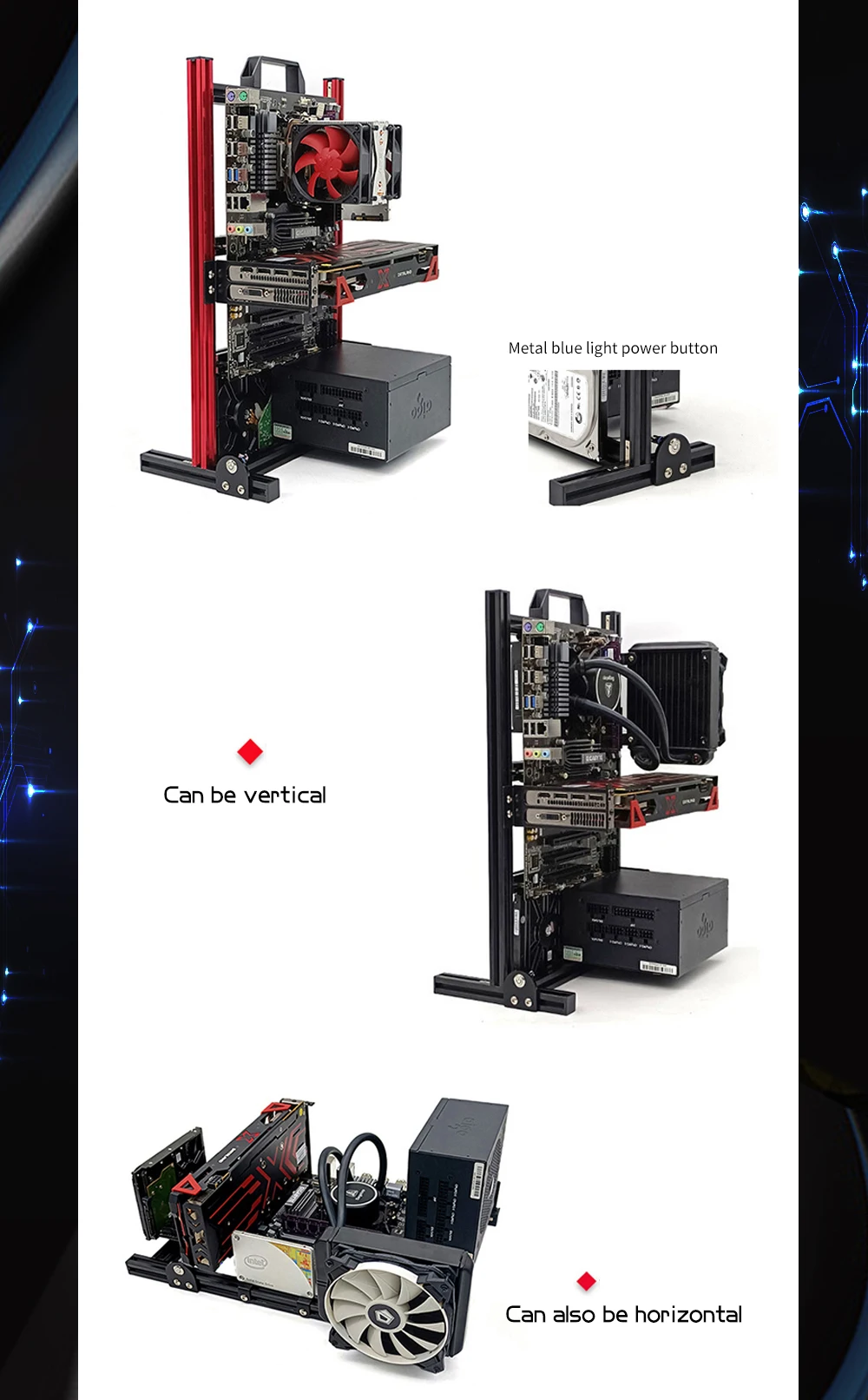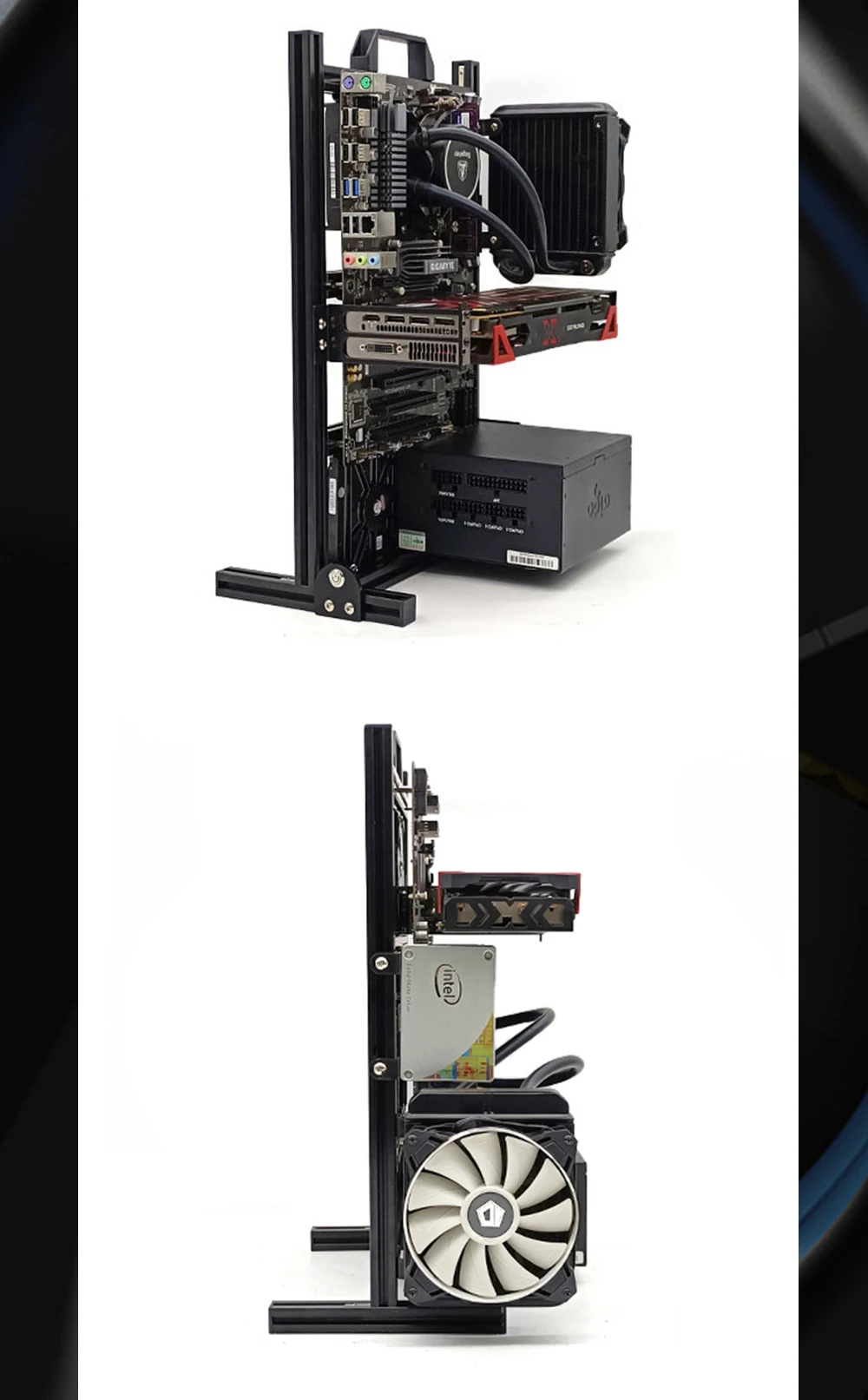 - > DIY Computador Open Frame,Vertical ATX/ ITX / MATX Gamer Gabinete Alumínio, Modding Desktop Gaming PC Caso Refrigerador de Ar Água