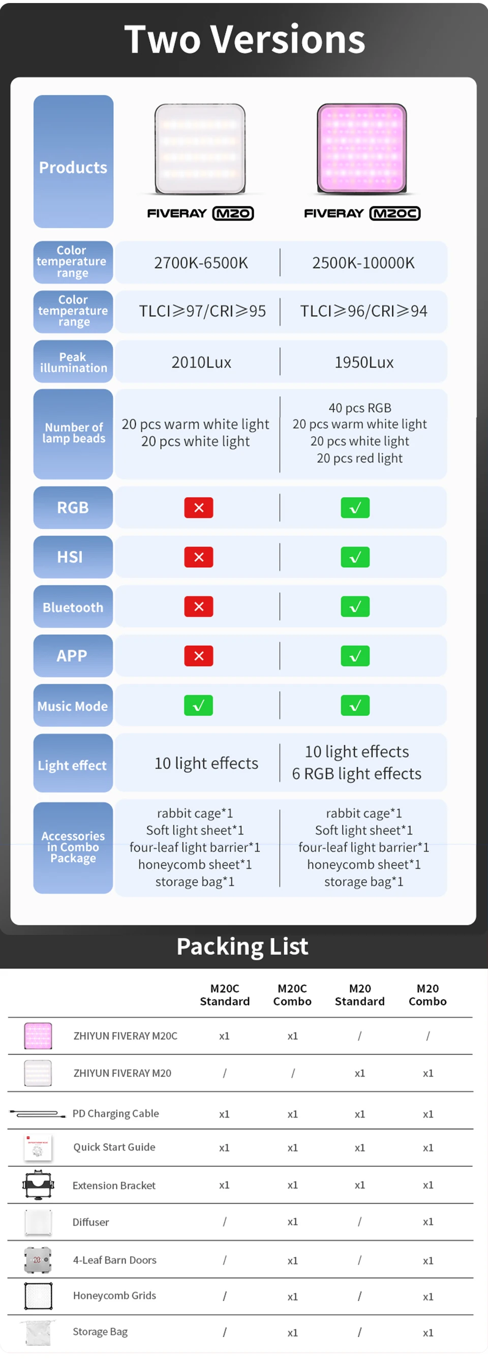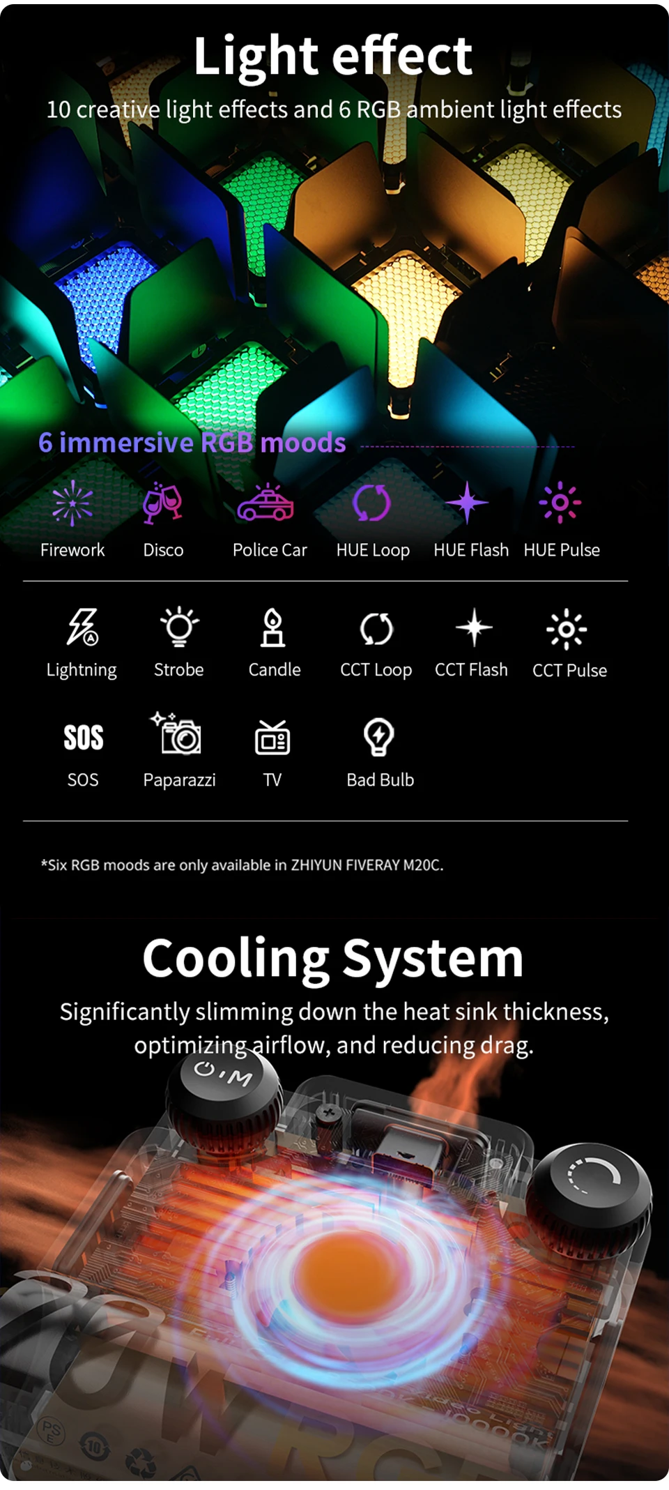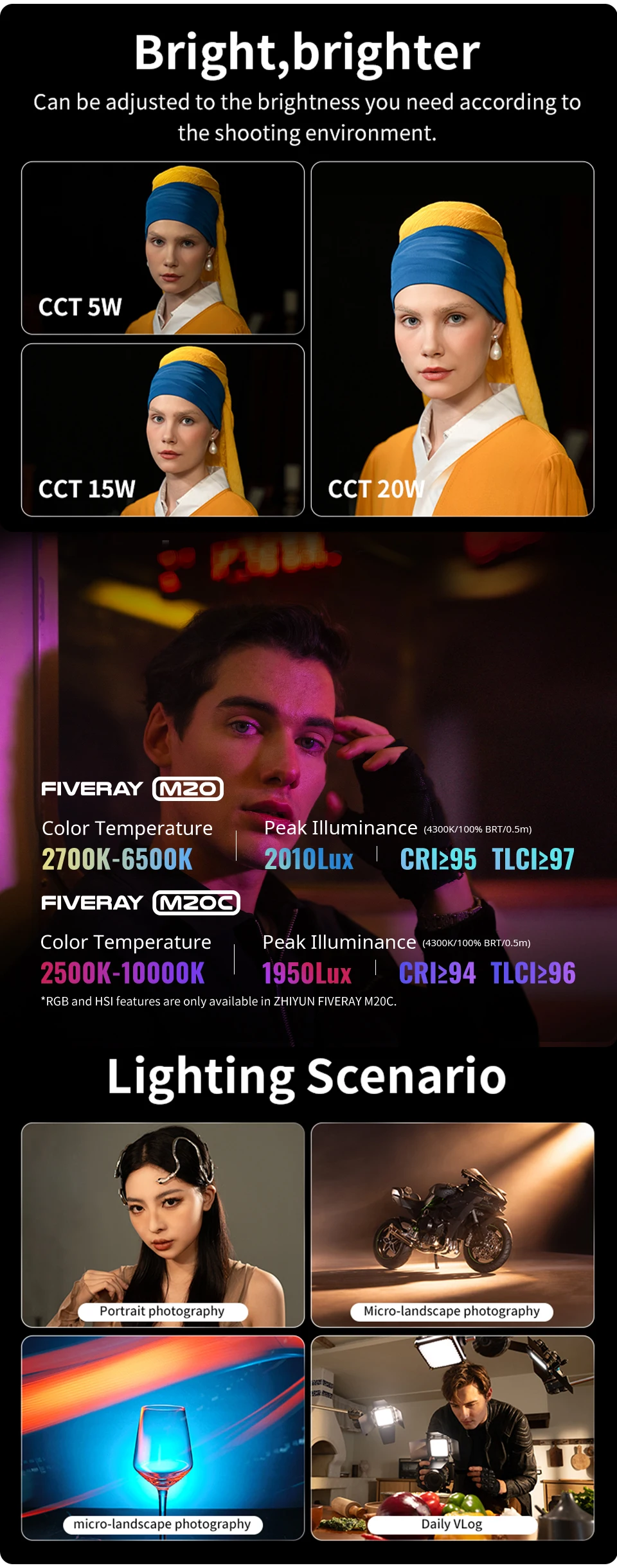 - > Do brasil sem taxa Zhiyun fiveray oficial m20c m20 20w rgb luz de vídeo 2500k-10000k luzes de preenchimento controle app fotografia iluminação streaming ao vivo