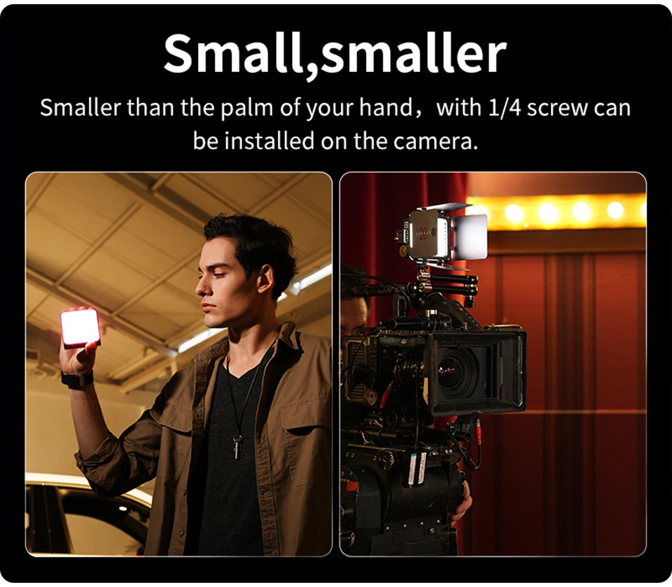 É menor do que a palma da sua mão, com 1/4 parafuso pode ser instalado na câmera.