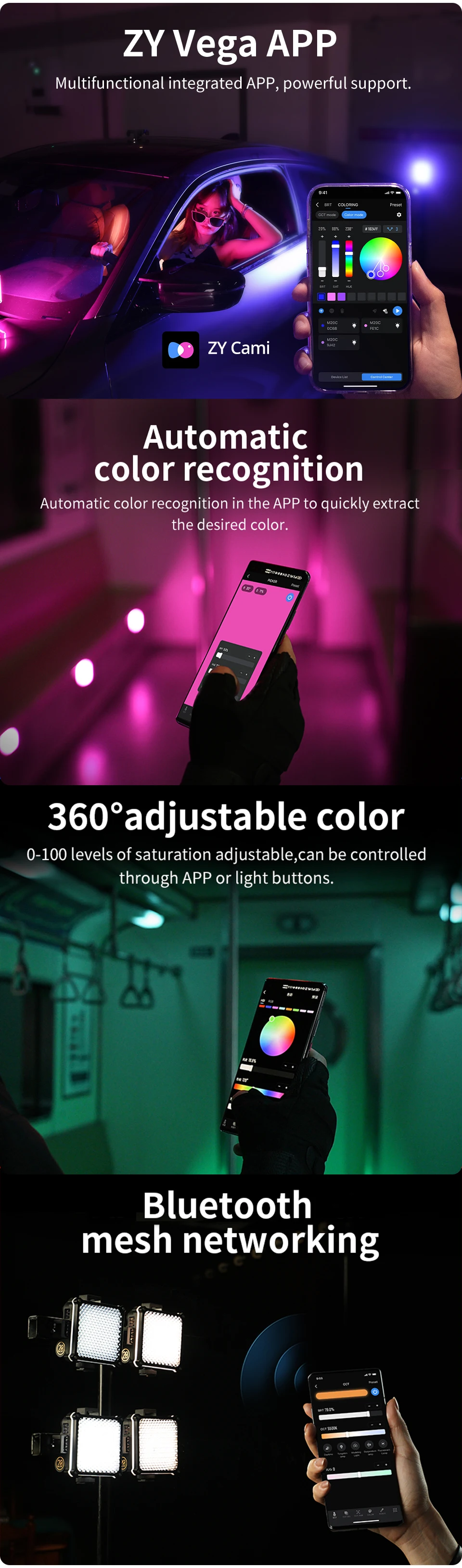 0-100 níveis de saturação ajustável, pode ser controlado através de APP ou botões leves.
