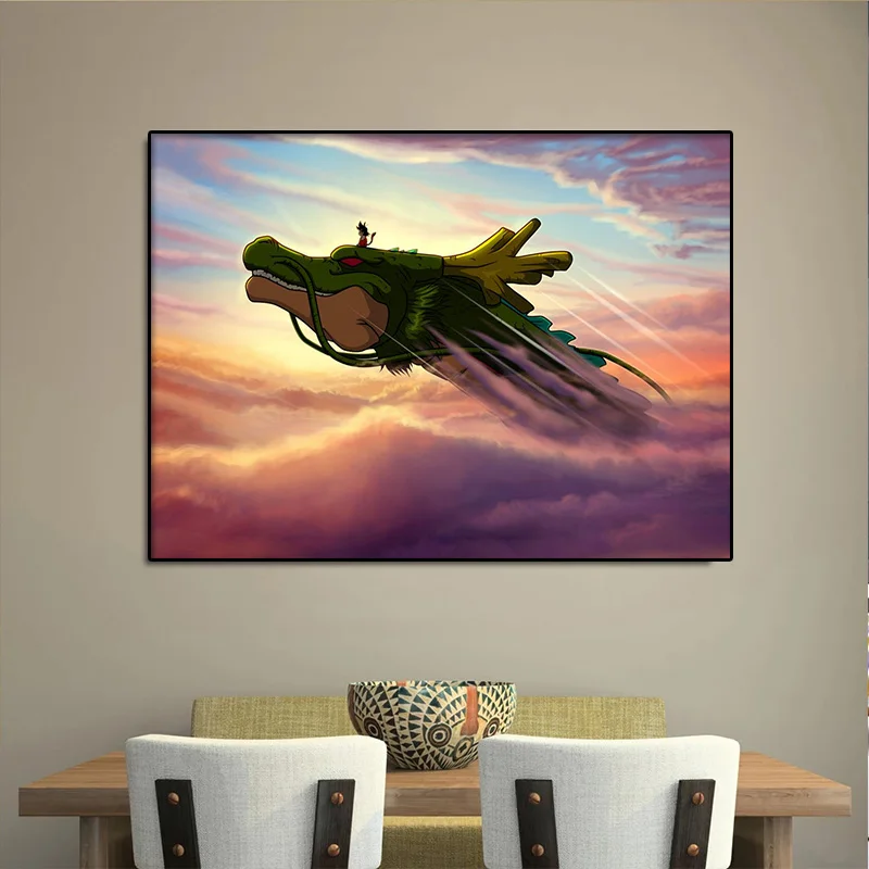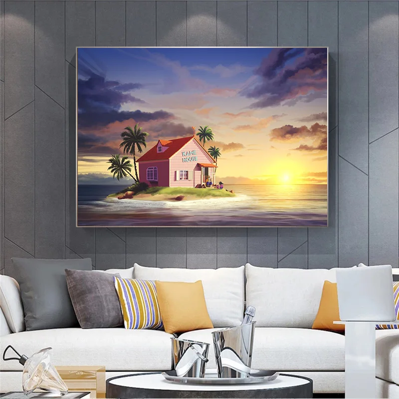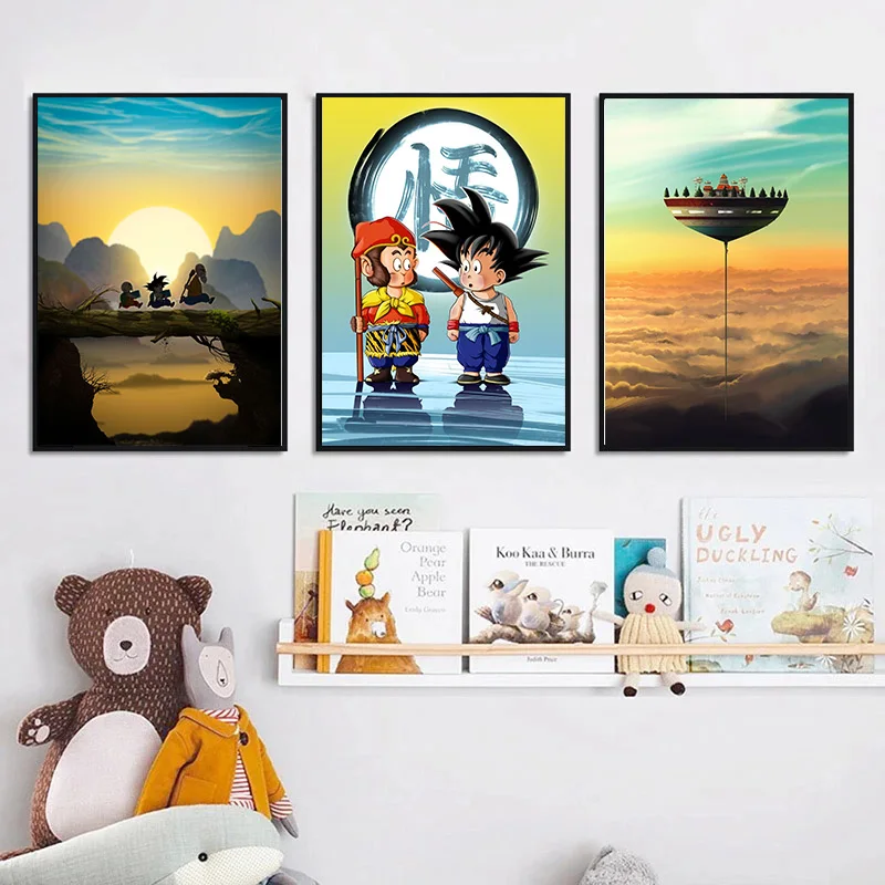 - > Dragon ball goku cartaz kami casa pintura em tela impressão super saiyan arte da parede mural família crianças decoração do quarto fotos quadros