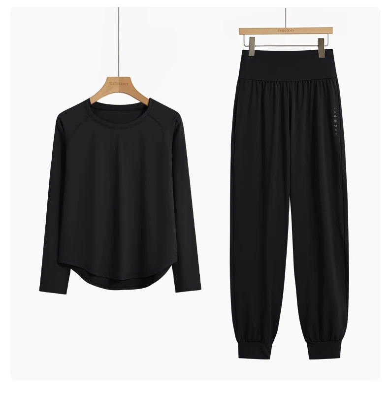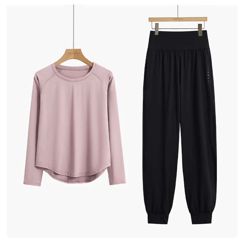 DRUR 2 pçs conjunto de yoga feminino calças esportivas conjuntos 2 peças roupa esportiva feminina manga longa fitness topo cintura alta sweatpants ternos