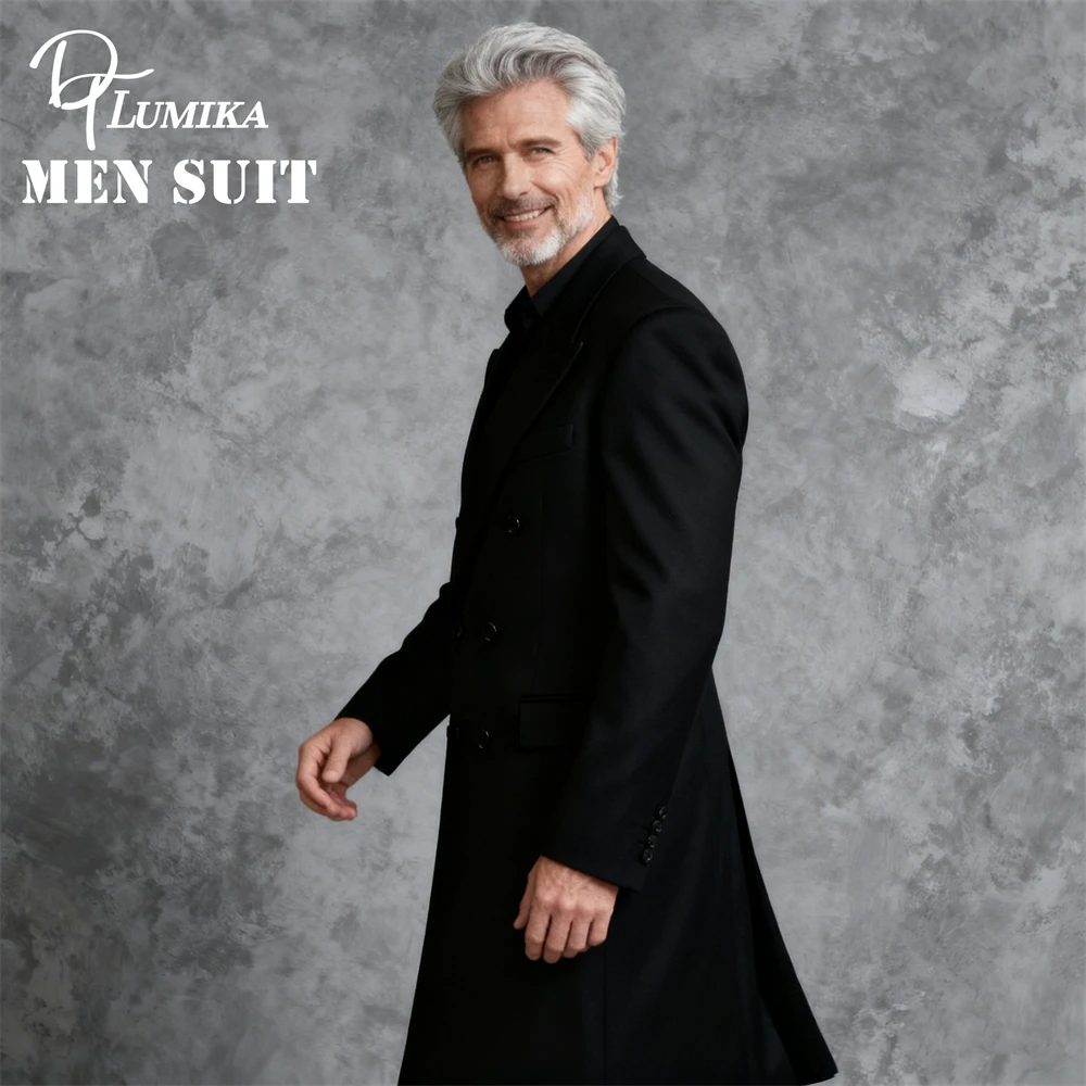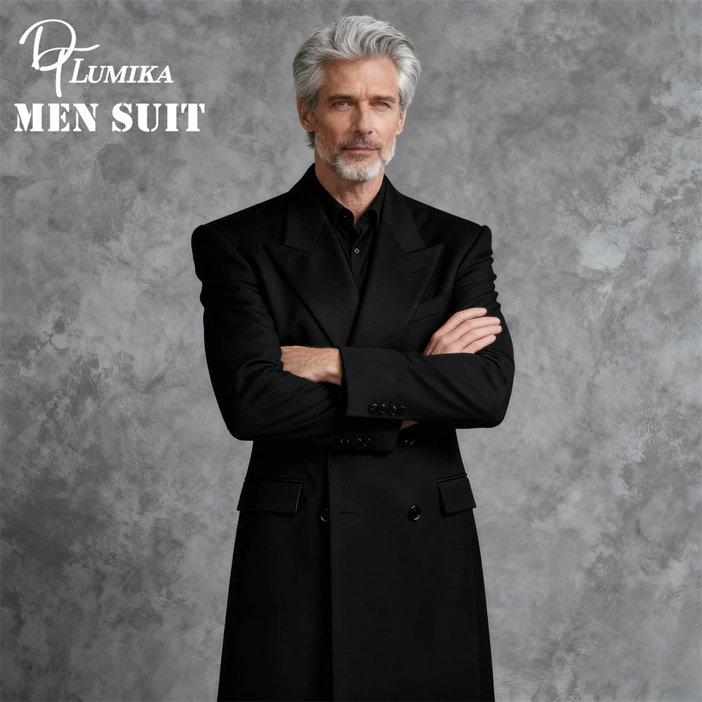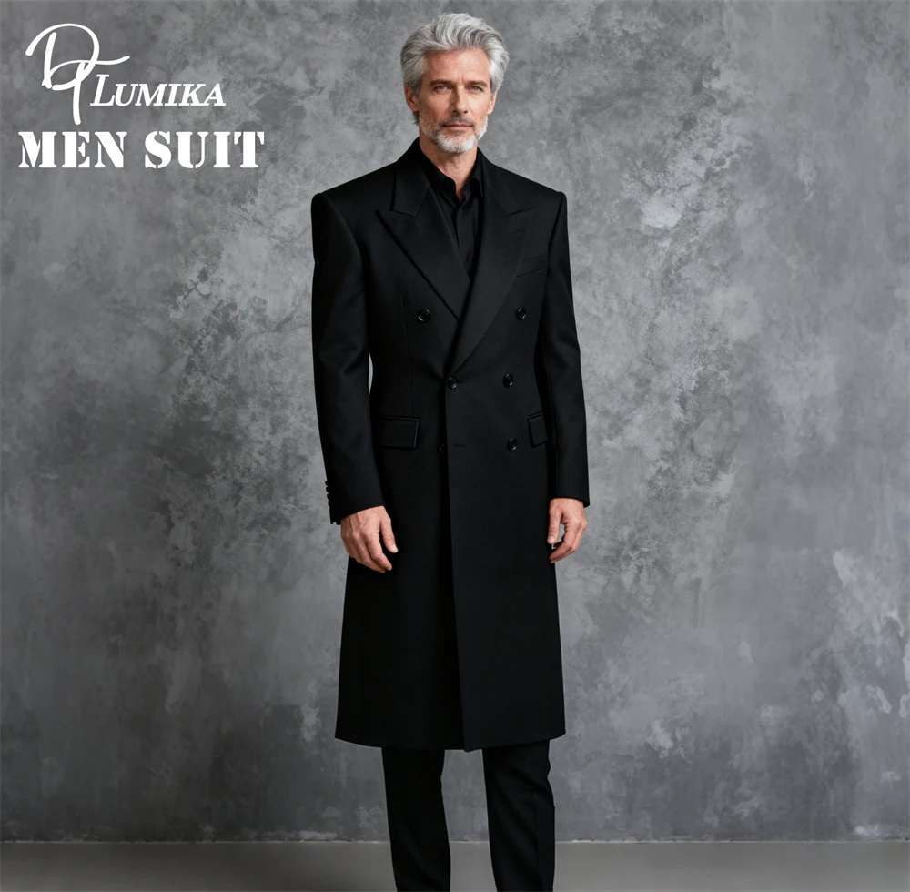 - > DTLumika – Casaco de terno legal de ombro largo para homens, jaqueta de terno longo duplo breasted, XXS-7XL masculino roupa formal ternos pretos