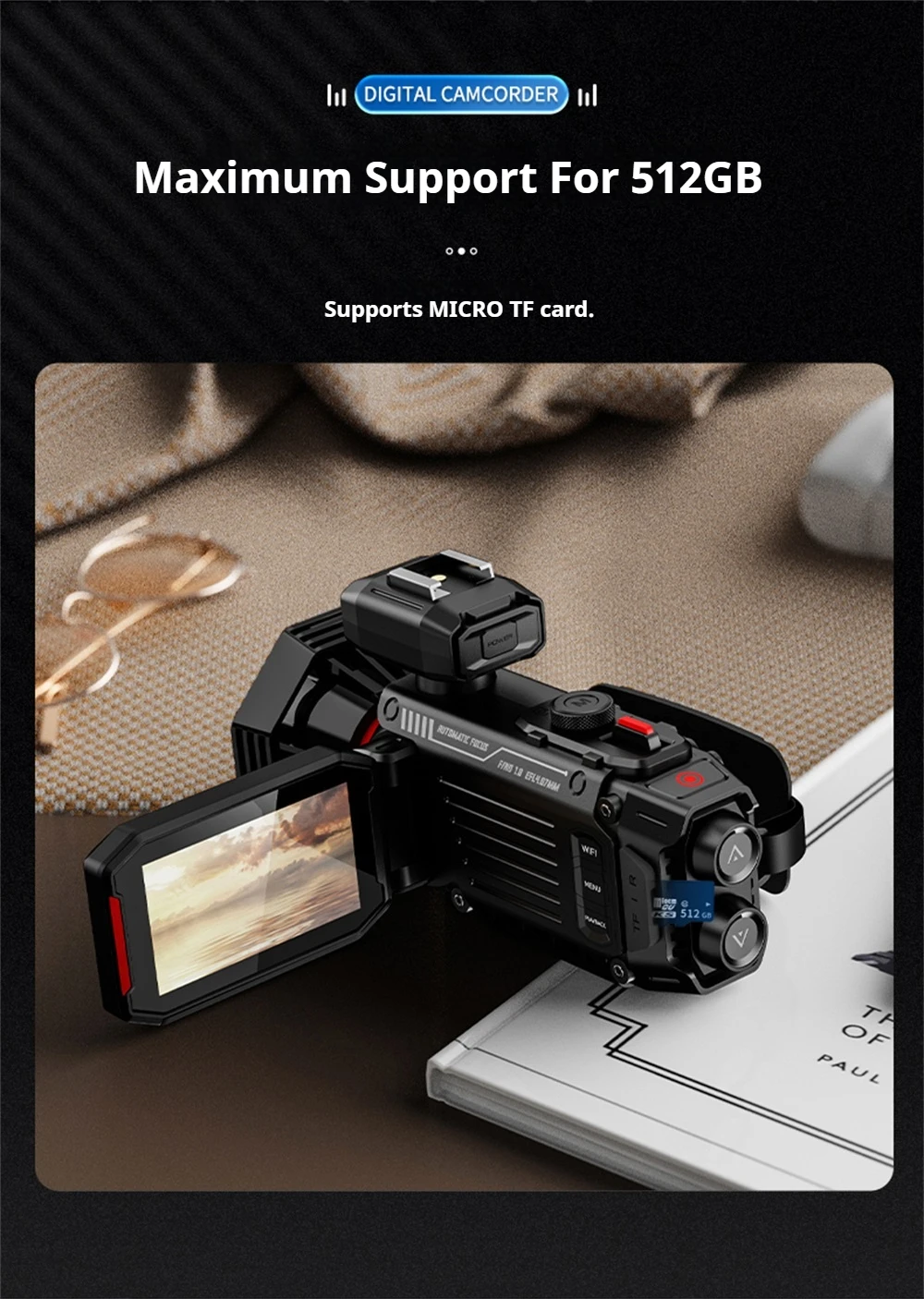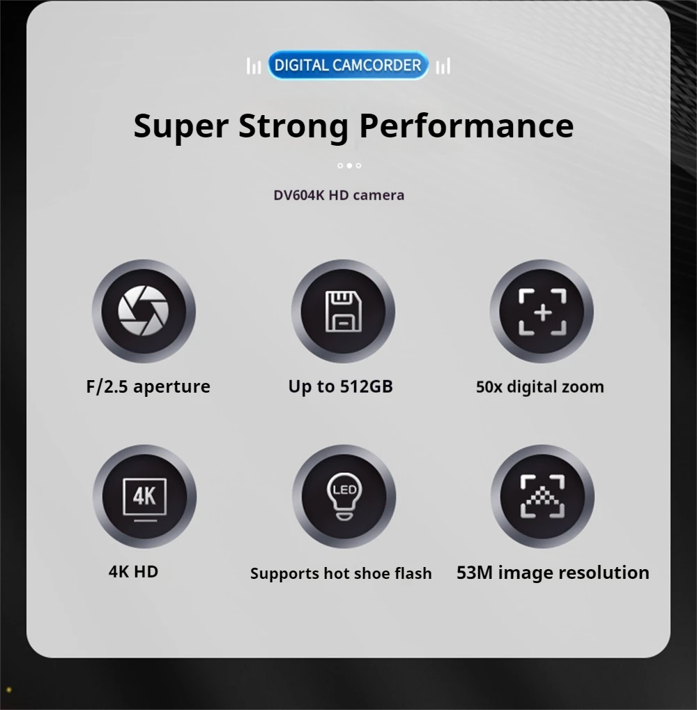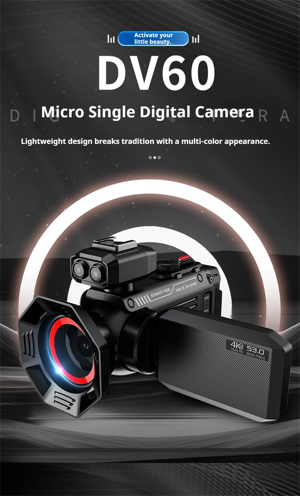 - > Dv60 4k uhd digital wifi telescópios filmadora leve moda câmera gravador para fotografia filtro embutido 50x zoom 53mp