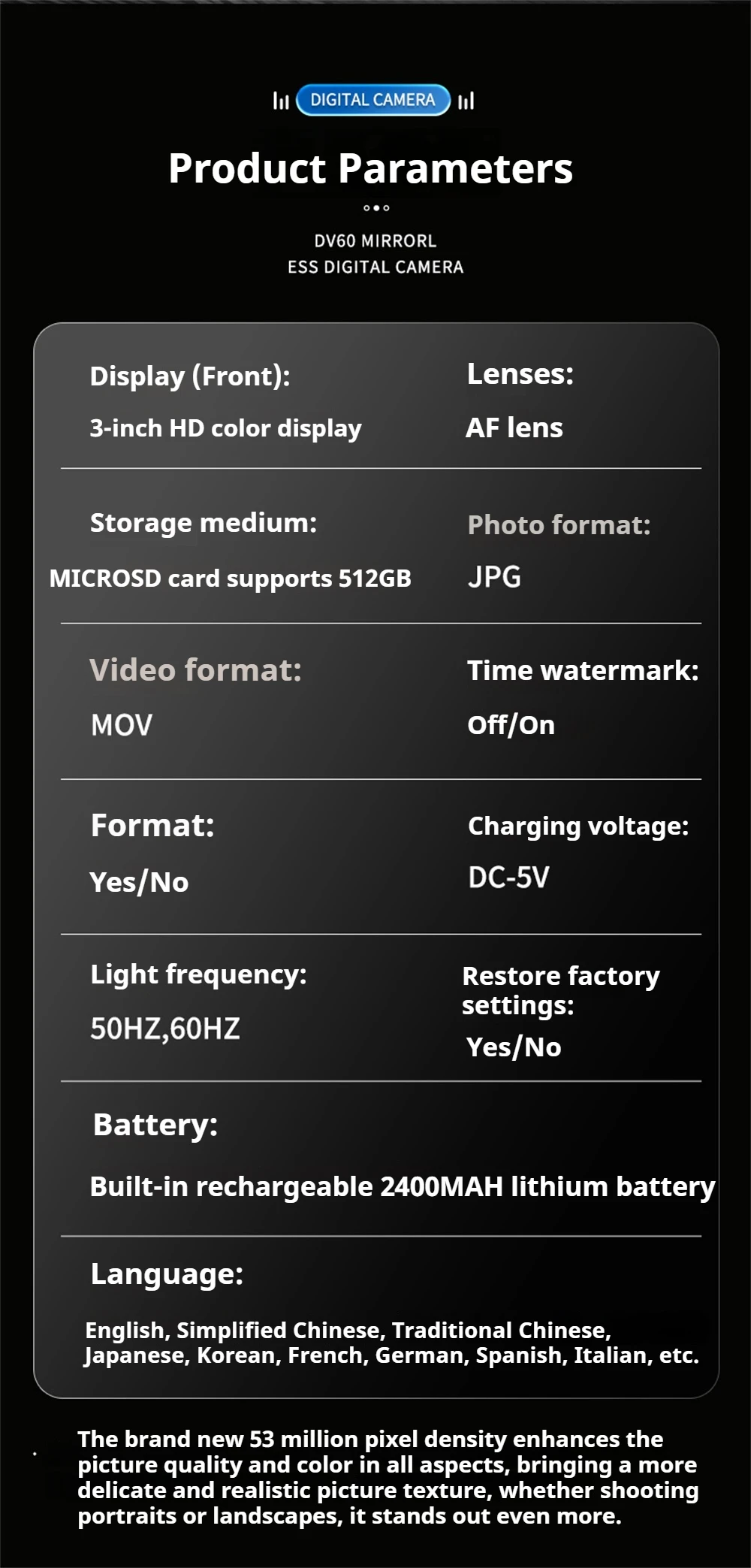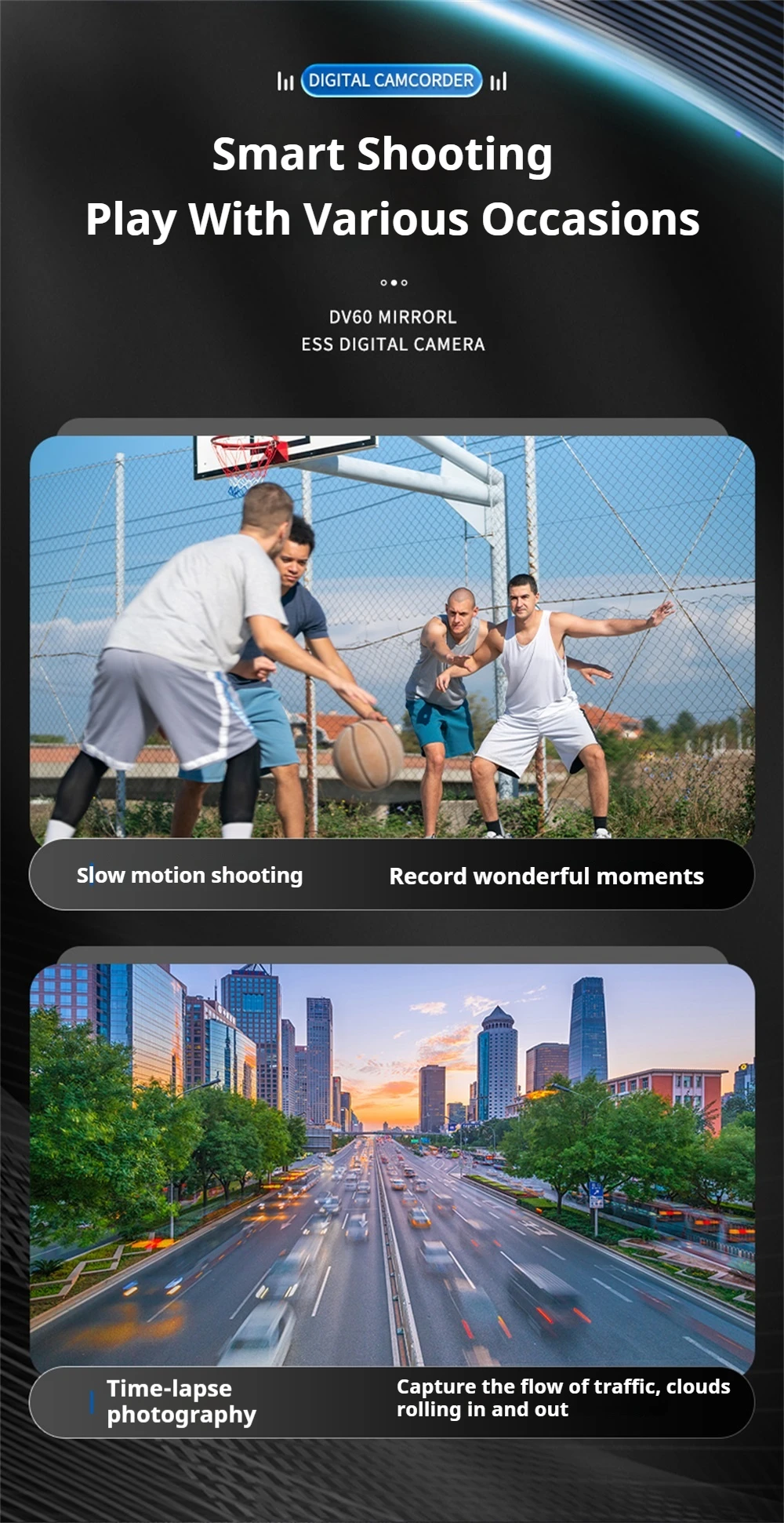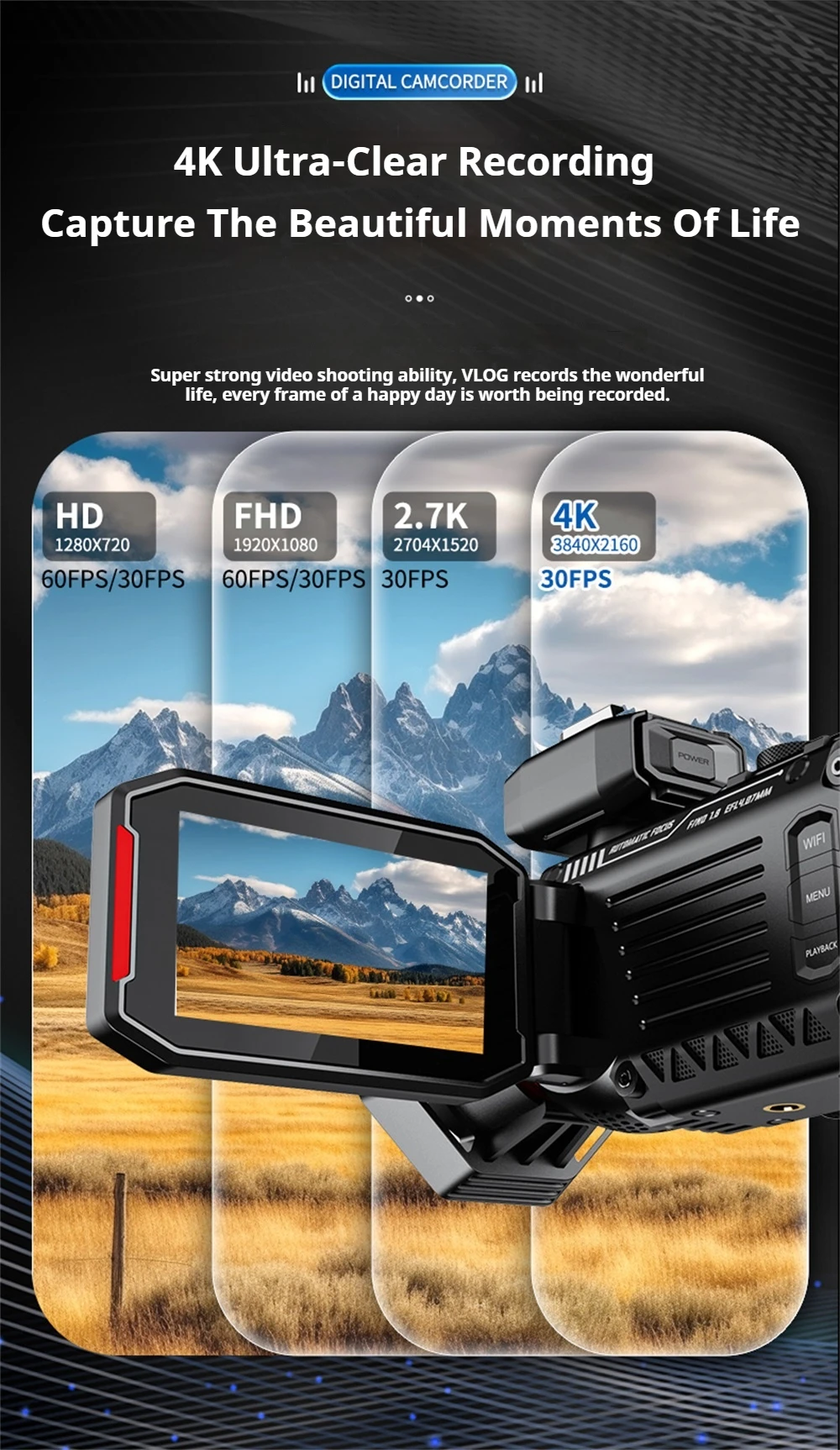 - > Dv60 4k uhd digital wifi telescópios filmadora leve moda câmera gravador para fotografia filtro embutido 50x zoom 53mp
