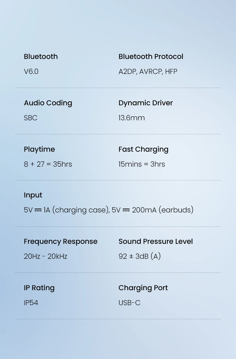 Ouça 8 horas com uma única carga e estenda-a para 35 horas com o estojo de carregamento para desfrutar contínuo da música.