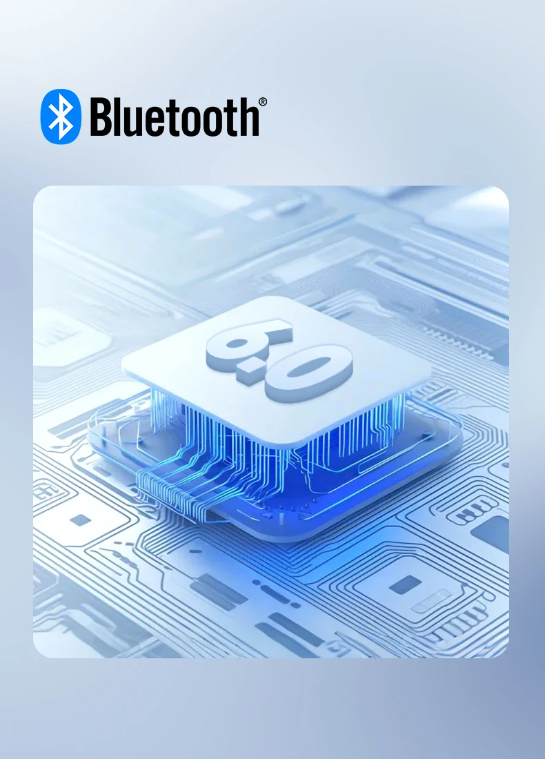 Bluetooth® A tecnologia V6.0 fornece velocidades de transmissão mais rápidas, baixo consumo de energia e uma conexão estável.