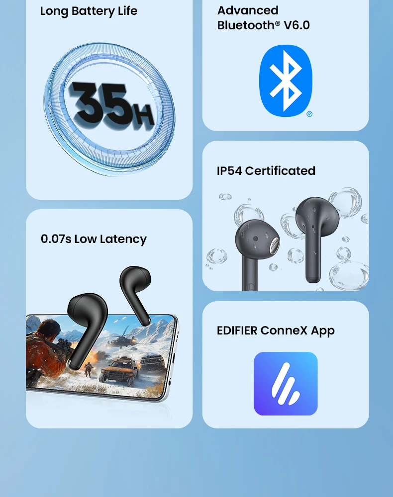 - > Edifier x2 plus verdadeiro sem fio fones de ouvido tws bluetooth fone 70ms baixa latência bluetooth v6.0 ip54 à prova dip54 água 35 horas tempo reprodução