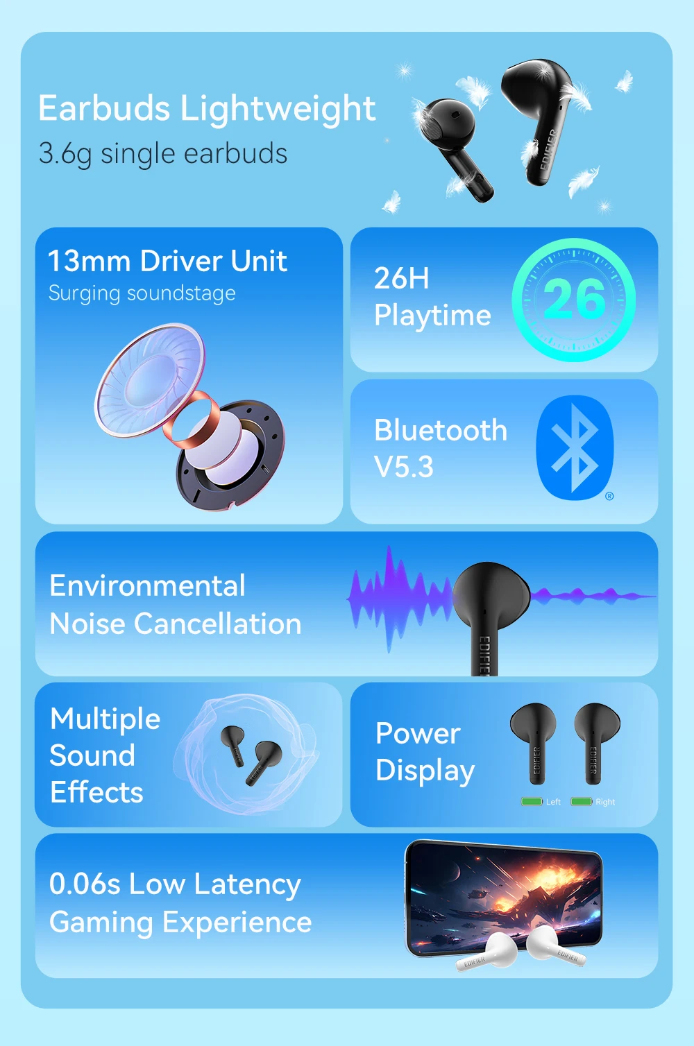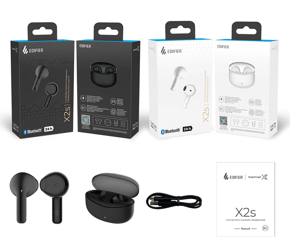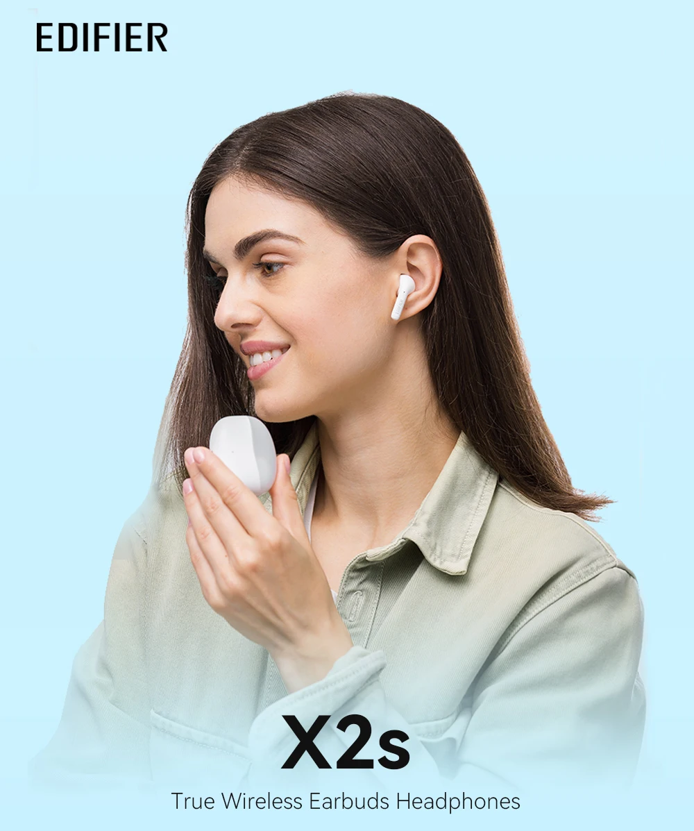 - > Edifier X2s TWS Fones de ouvido Bluetooth Fones Sem Fio Earbuds, Bluetooth 5.3, Driver de 13 mm, graves fortes, design leve, 26 horas de reprodução