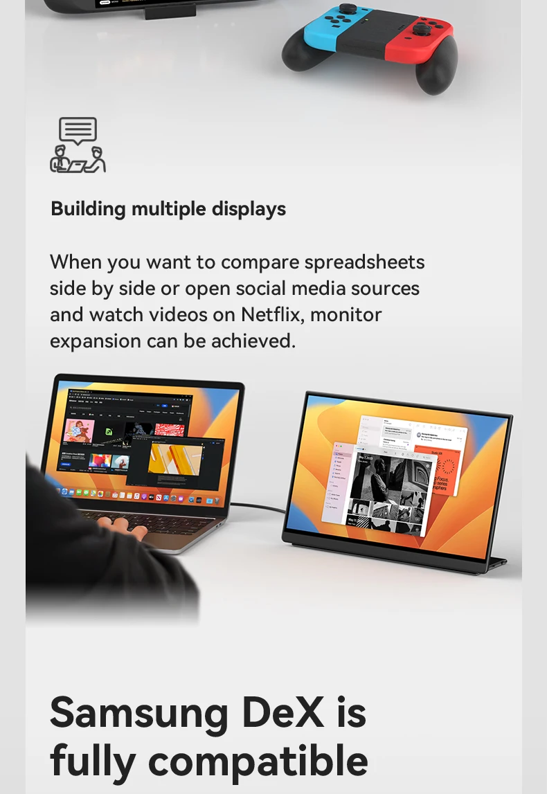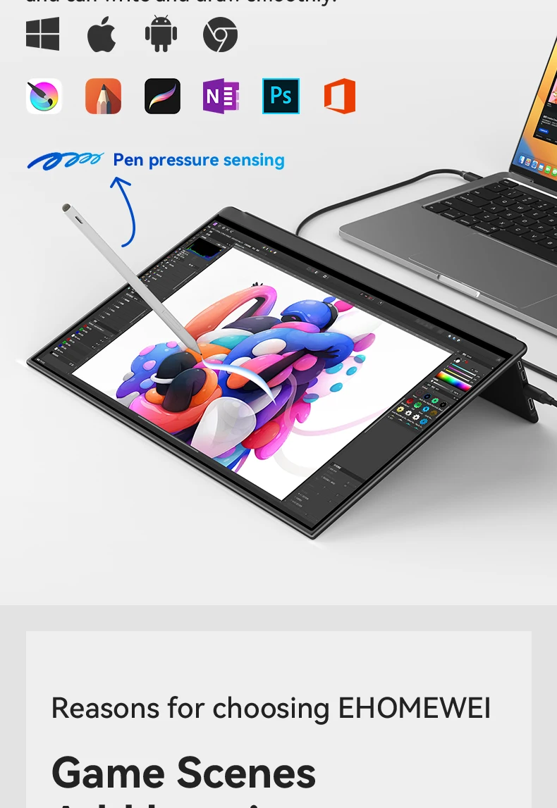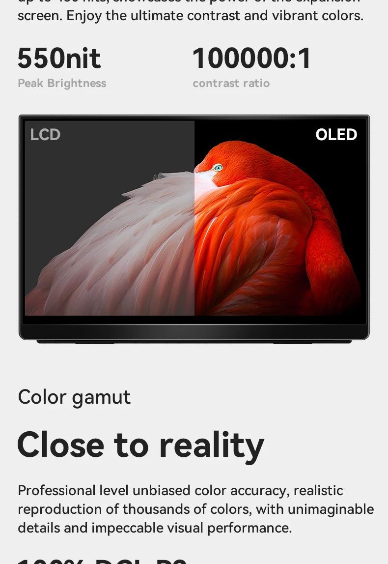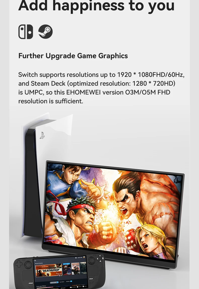 - > EHOMEWEI-OLED Monitor portátil para interruptor laptop Windows Macbook, série Om, 13,3 ", FHD, 60Hz, 100% DCI-P3 16:9