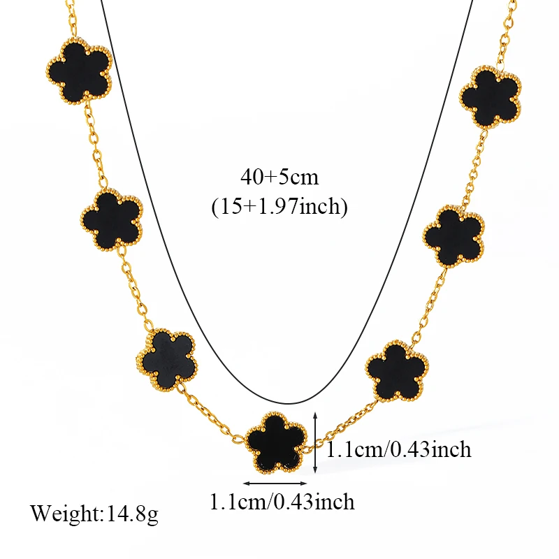 - > Eilieck 316l aço inoxidável preto 15 flores trevo pingente colar para mulheres moda nova festa presente pescoço corrente jóias colar