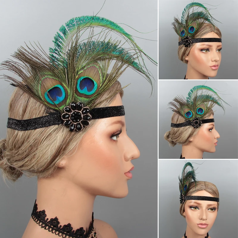 Elegante hairband headpiece pena pavão bandana cocar traje do vintage festa hairband para mulheres pena headpiece