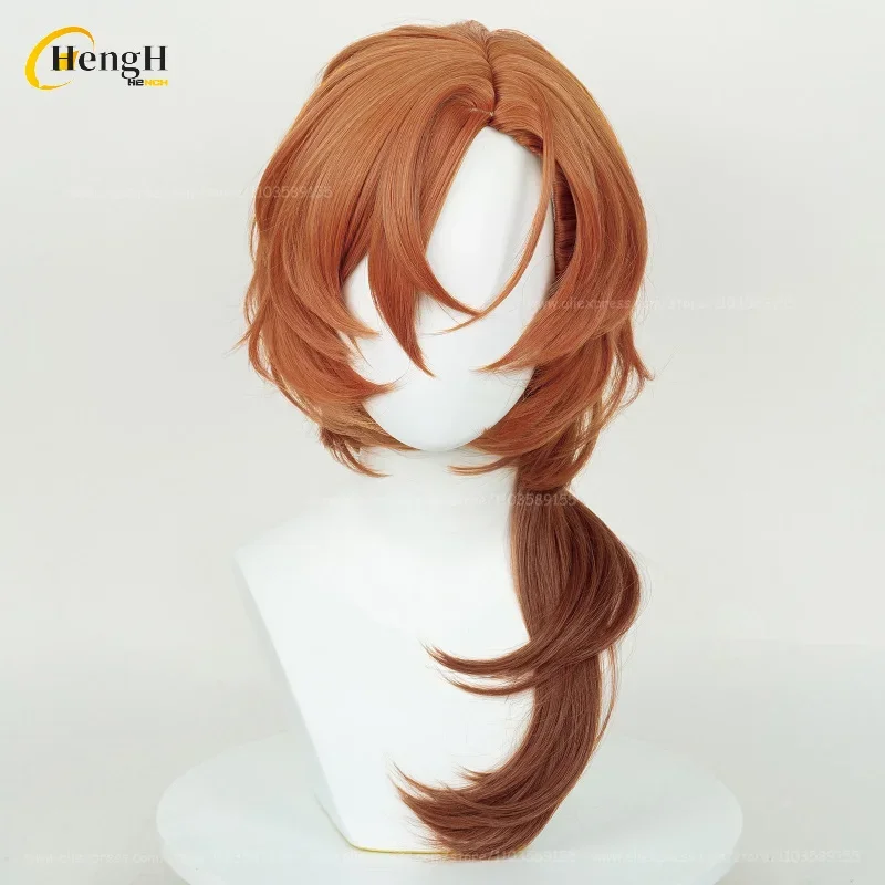Em estoque nakahara chuuya peruca sintética anime longo 55cm gradiente cosplay peruca e gargantilha resistente ao calor cabelo perucas de festa de halloween