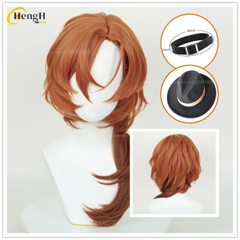 - > Em estoque nakahara chuuya peruca sintética anime longo 55cm gradiente peruca cosplay e gargantilha cabelo resistente ao calor perucas de festa de halloween