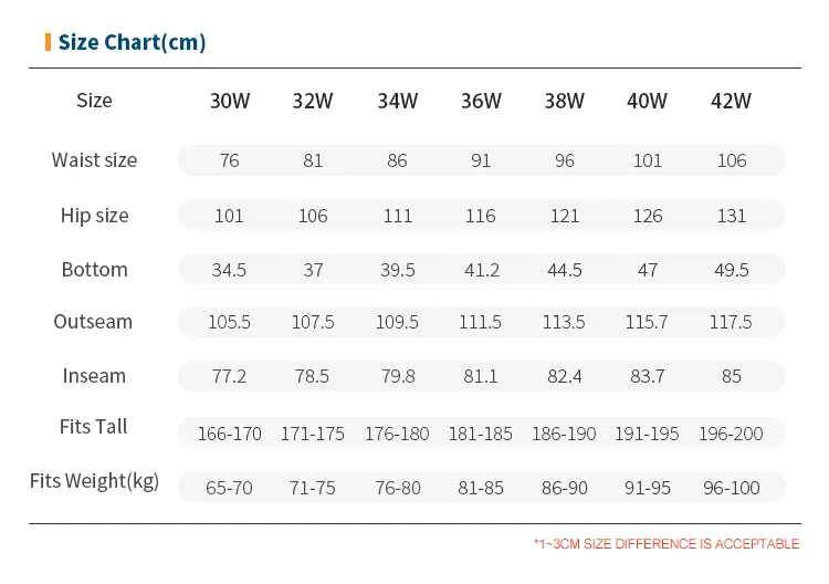 Size: 30W/32W/34W/36W/38W/40W/42W