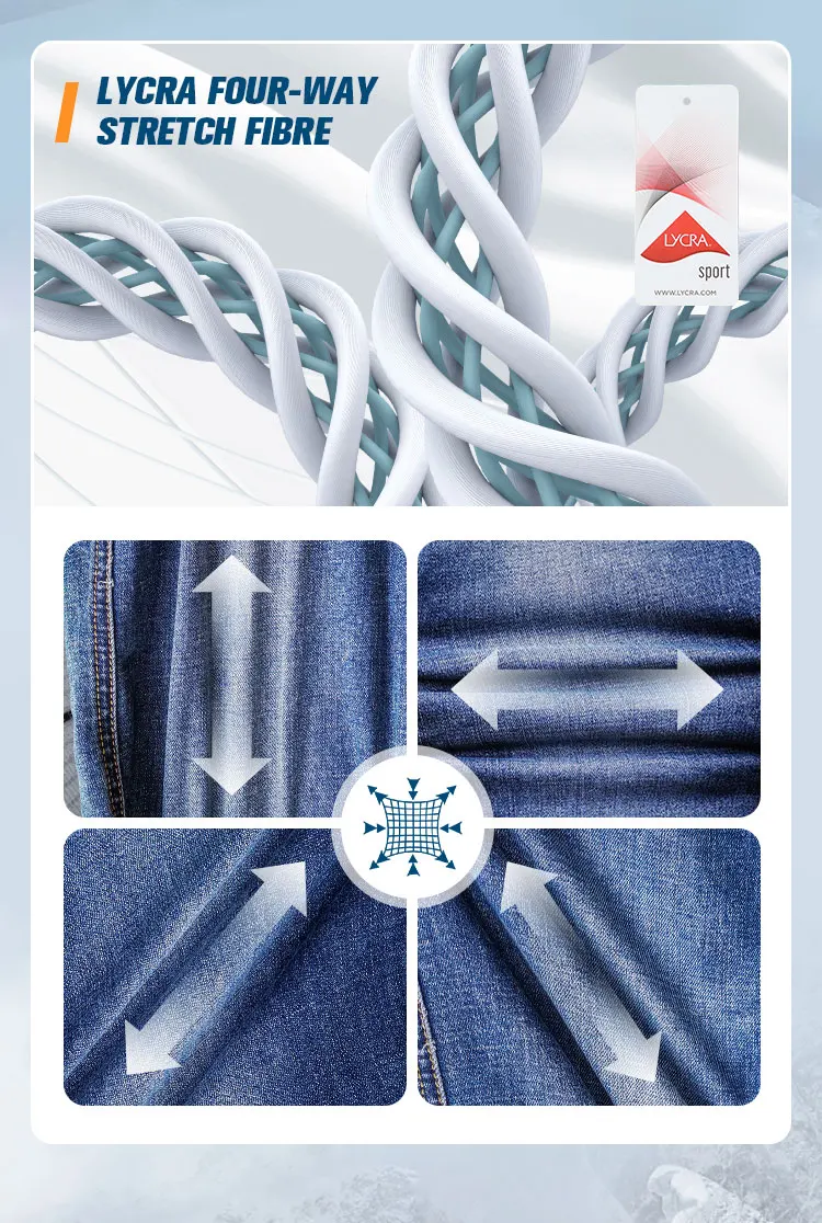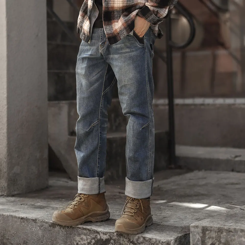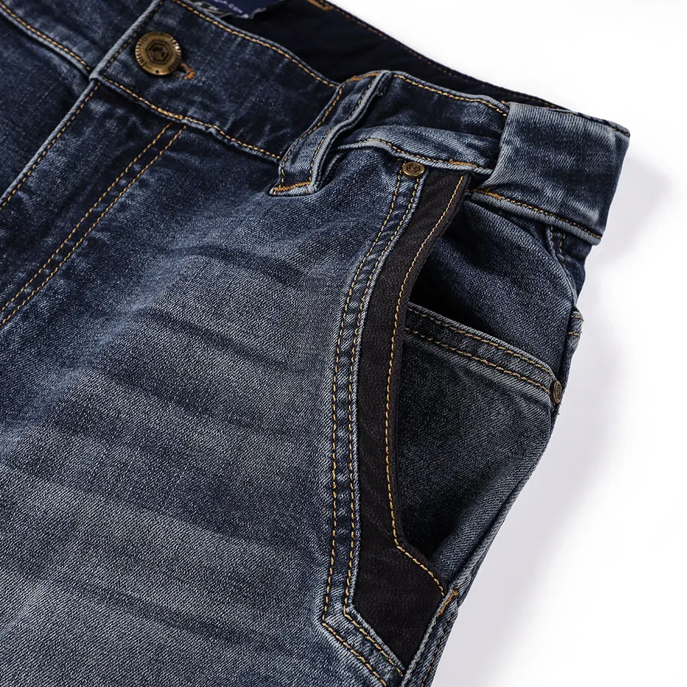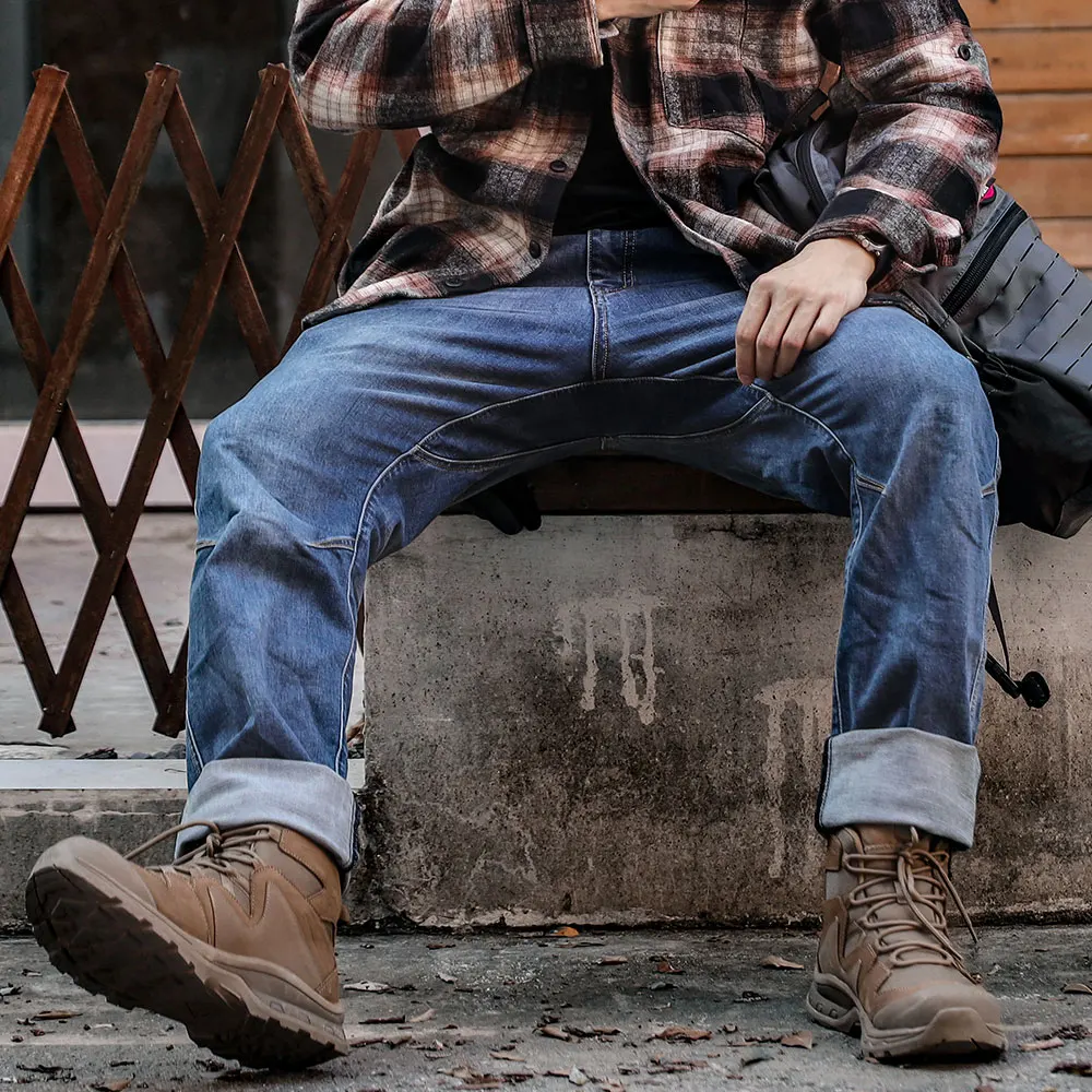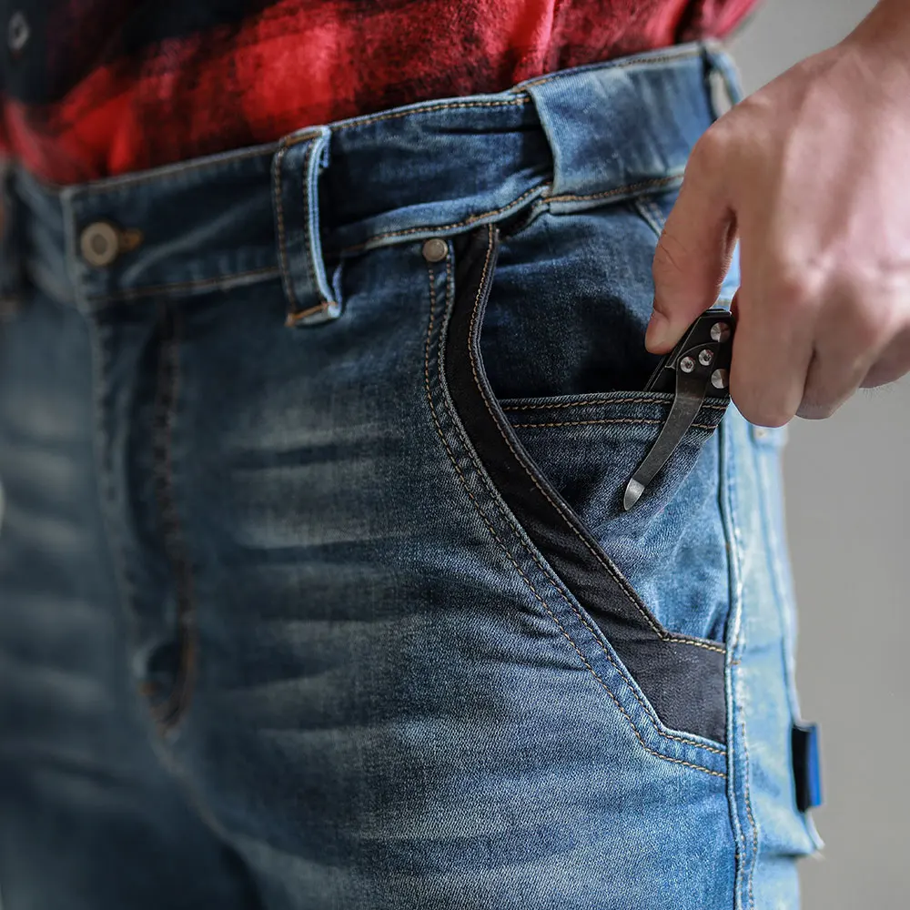 1.Functional fabric: the main material is made of cotton and Cordura nylon 66 blend, which is of outstanding abrasion resistance and is 3 times more than that of normal denim. With Lycra elastic fibre, it maintains wearing comfort, no sense of constriction.