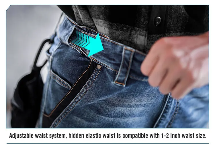 3. Adjustable waist system, hidden elastic waist is compatible with 1-2 inch waist size.