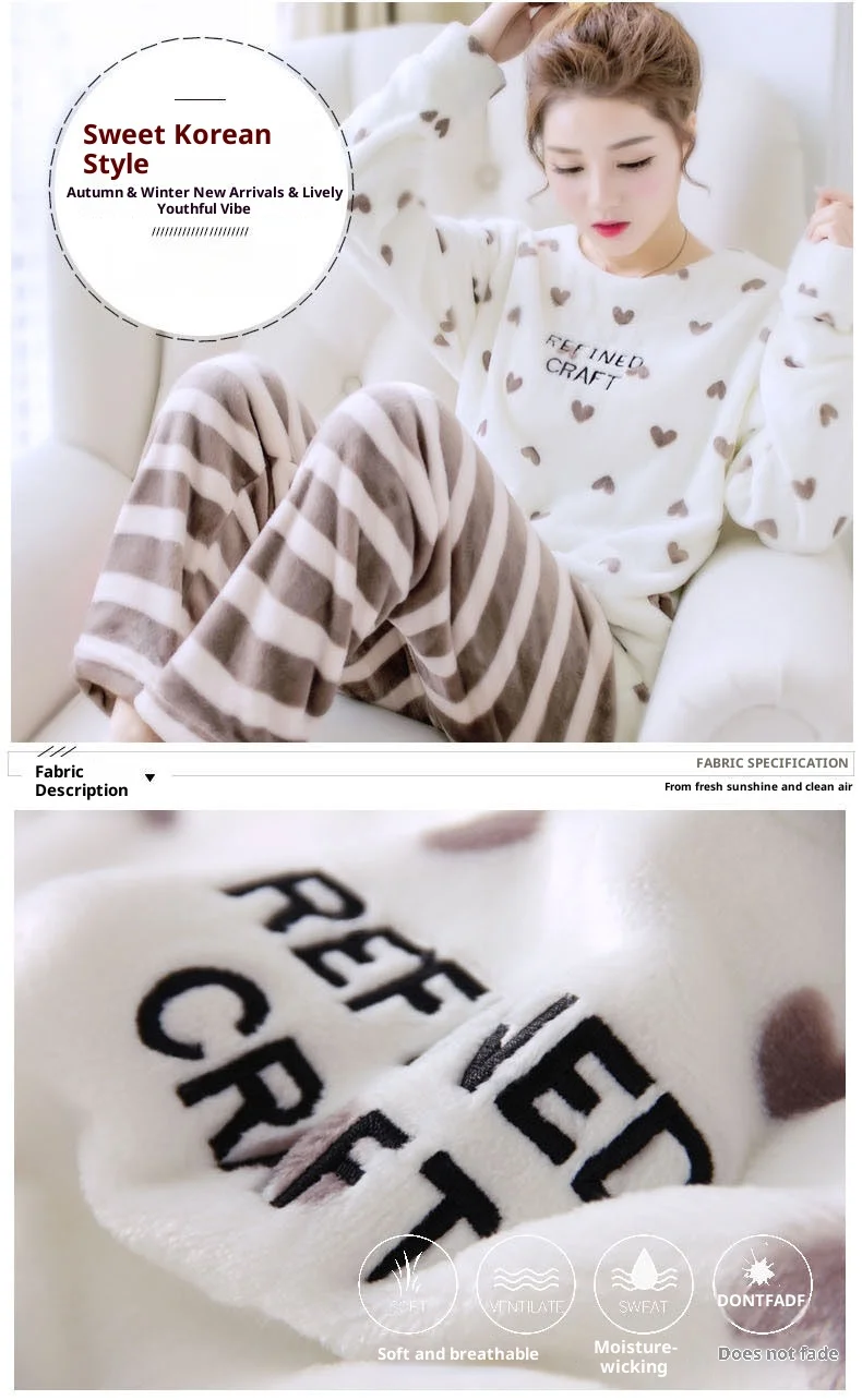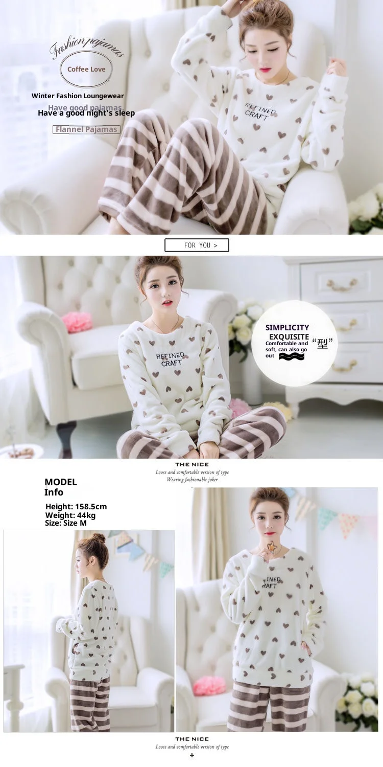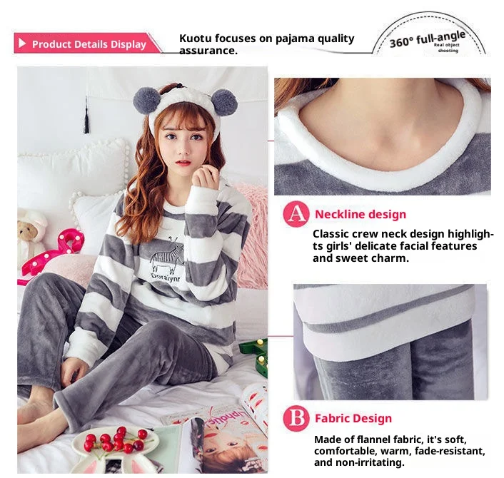 - > Engrossado flanela quente outono e inverno pijamas loungewear feminino bonito dos desenhos animados pijamas homewear coral veludo pijamas