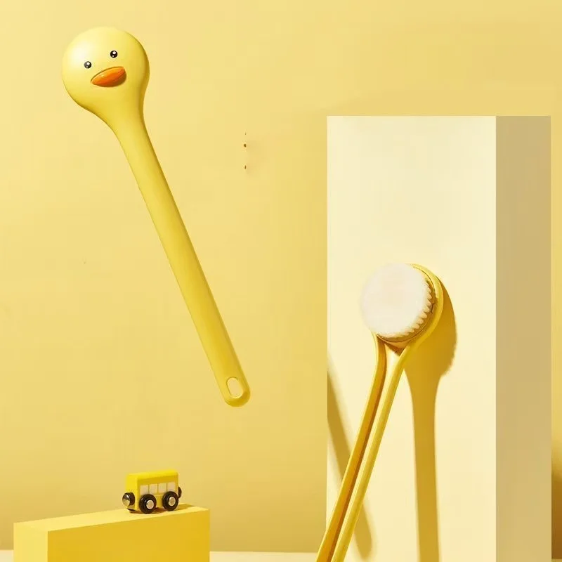 Escova de banho com cabo longo de pato fofo, cerdas macias, massageador de pele, chuveiro, esfoliação, escova de limpeza corporal, banheiro