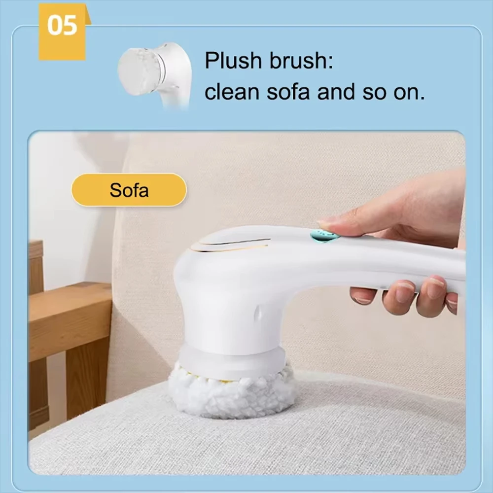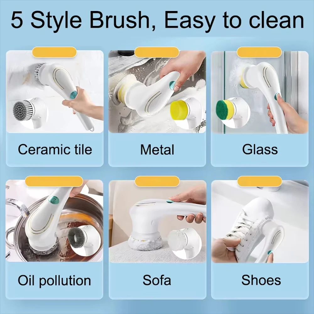 Escova de limpeza elétrica multifuncional 5 em 1, carregamento usb, escova de lavagem de banheiro, ferramenta de limpeza de cozinha, escova de lavar louça, banheira