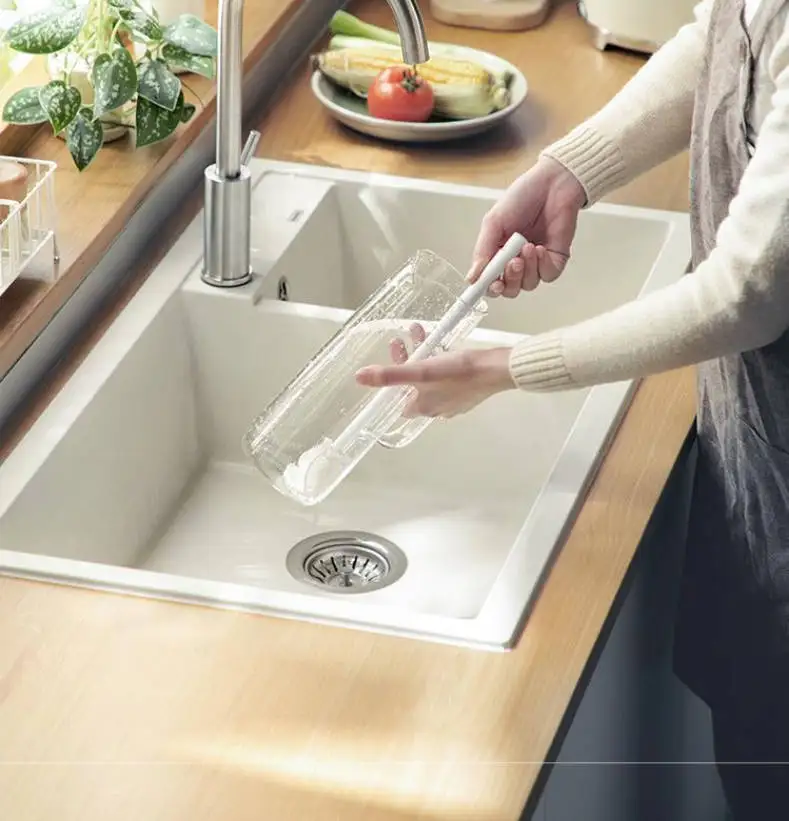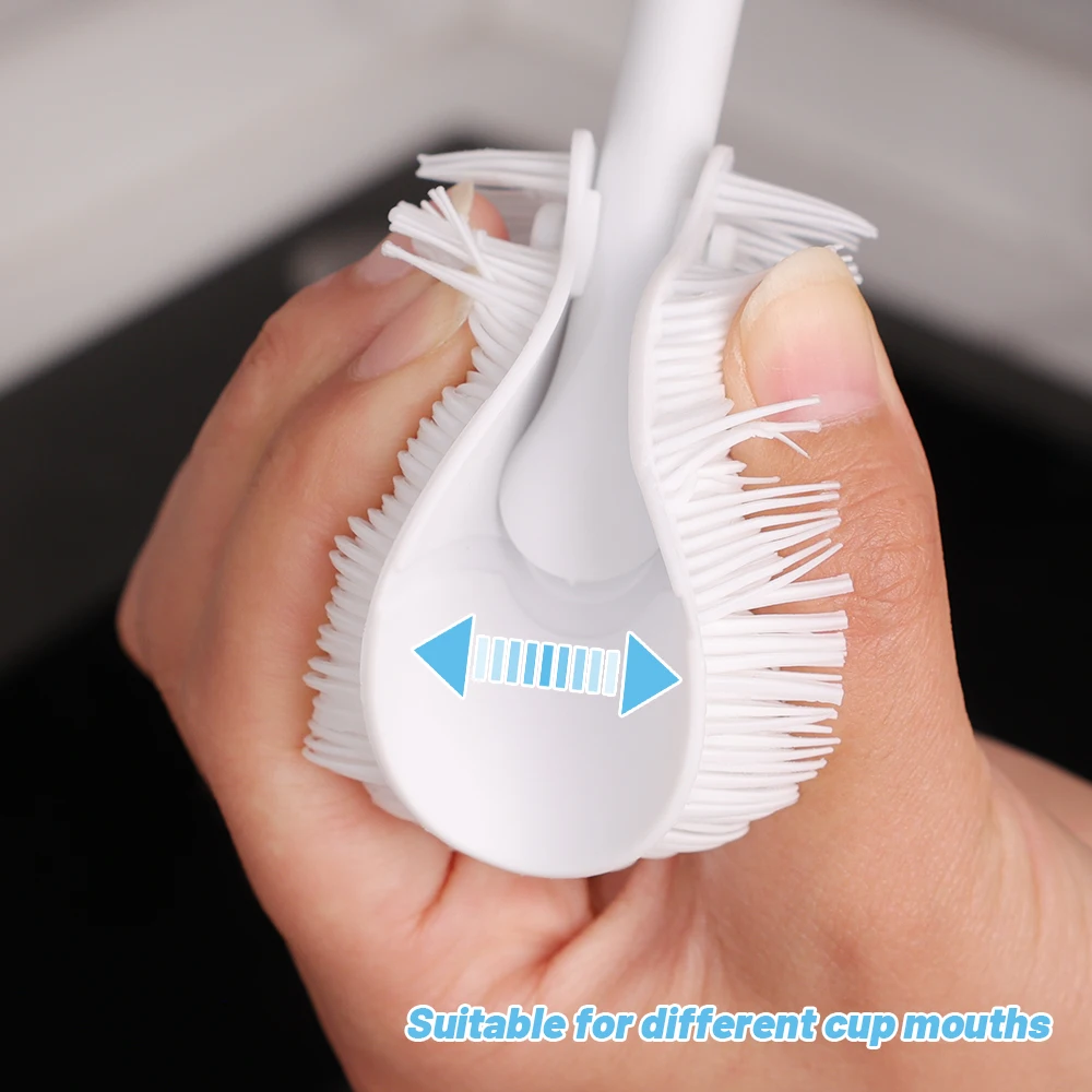 Escova flexível com punho longo para limpar a garrafa do leite, ferramenta de limpeza para o copo e a caneca, acessórios da cozinha