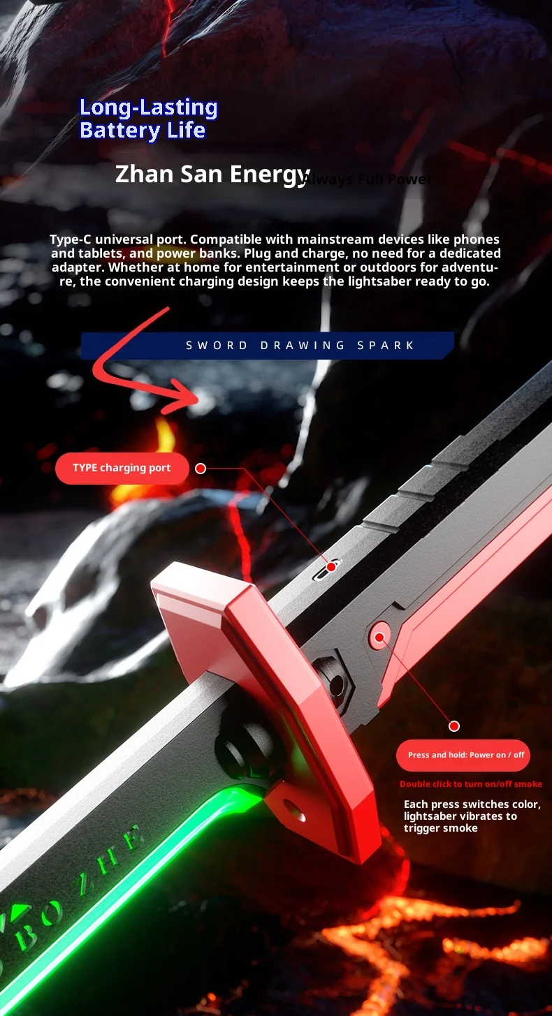- > Espada Laser LED com Fumaça, Luzes LED Multicoloridas, Efeitos Sonoros, Brinquedos Criativos para Crianças e Adultos, Espada de Cosplay, Presente