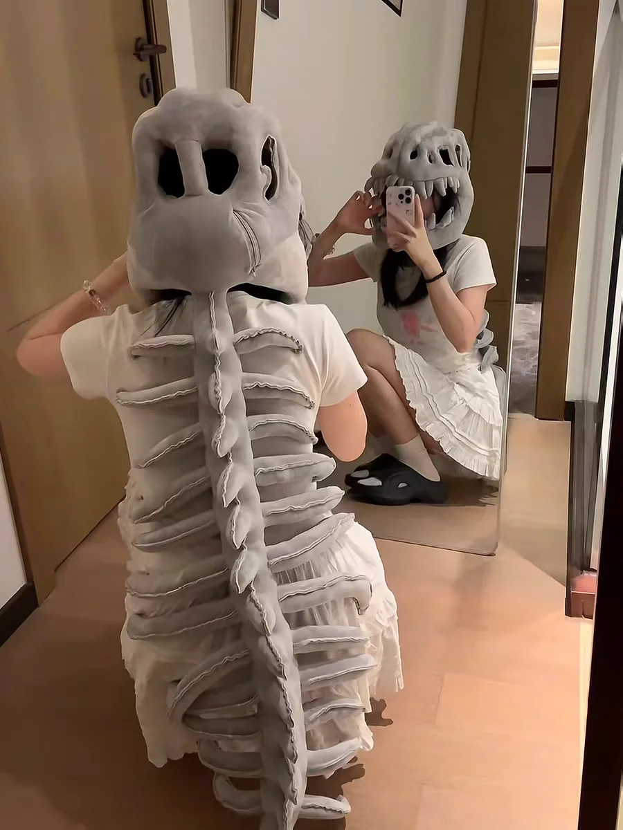 Esqueleto de dinossauro quente cos adereços crianças adulto bonito wearable máscara festa de halloween carnaval cosplay trajes engraçado headwear