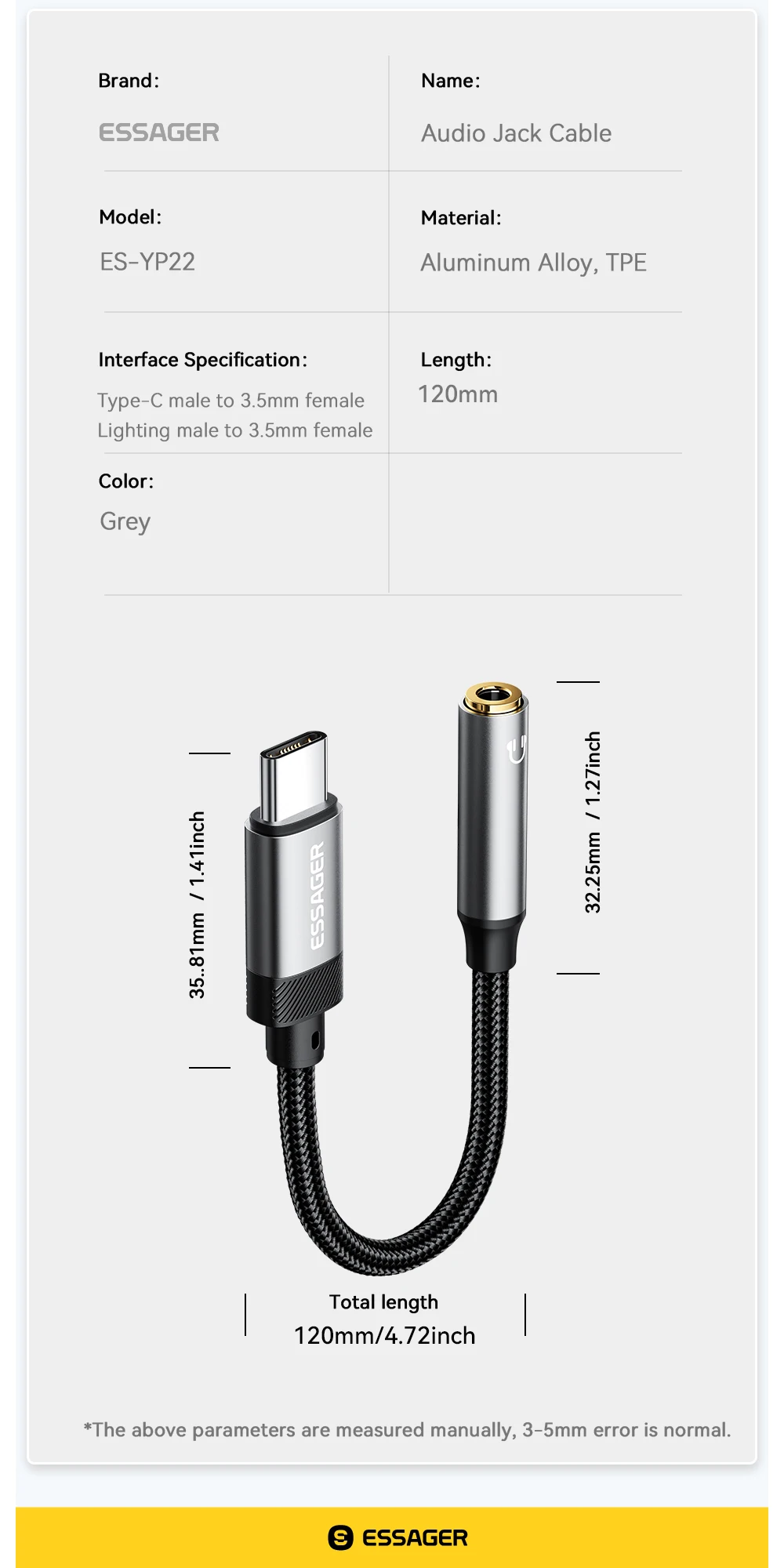 - > Essager relâmpago para 3.5mm Jack adaptador de áudio, fone de ouvido Aux cabo, USB tipo C para 3.5 adaptador, OTG, iPhone, Xiaomi, Oneplus