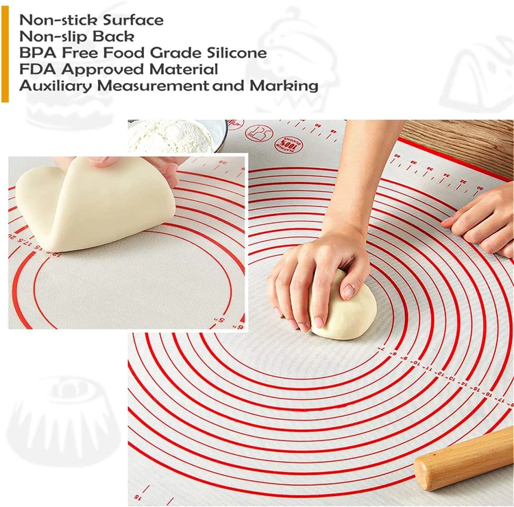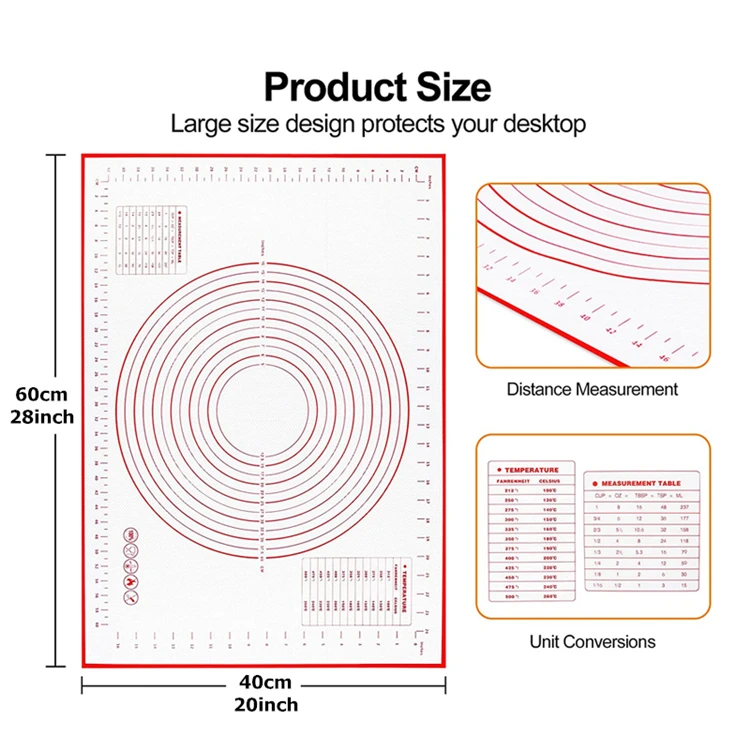 Esteira de cozimento de silicone antiderrapante esteira de pastelaria para rolar massa com medidas tapete de massa de cozinha torta crosta esteira forno forro yy206
