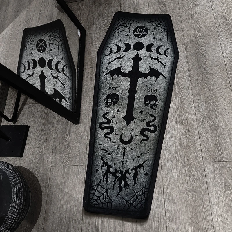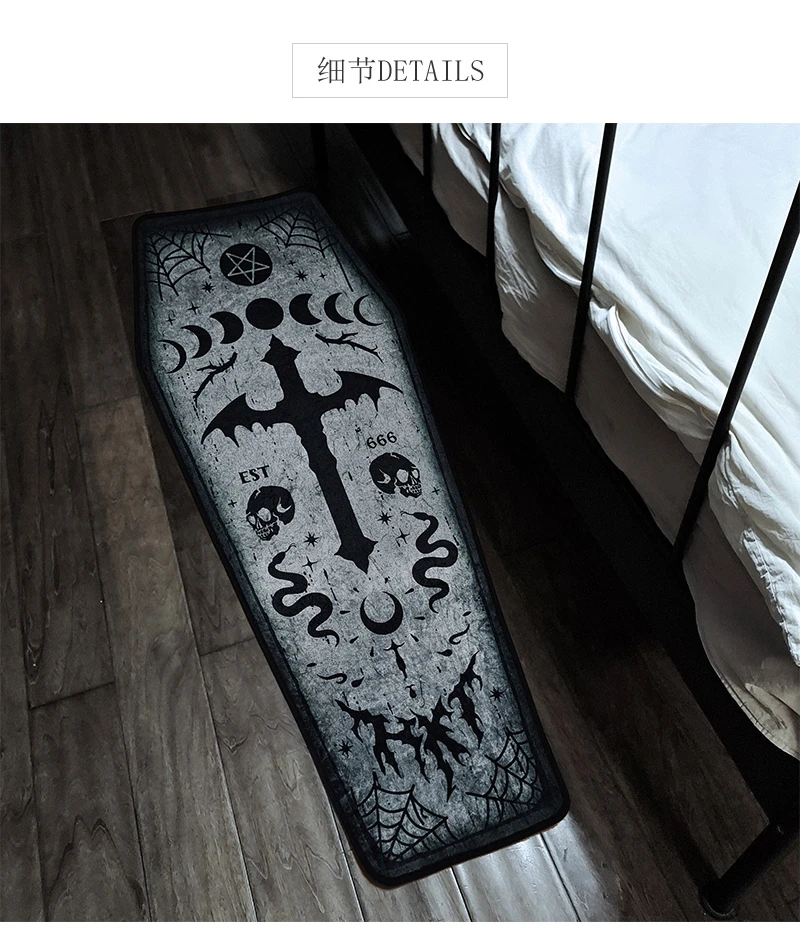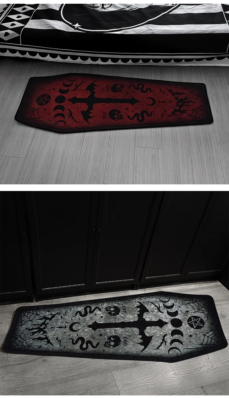 Estilo bruxa tapetes para sala de estar halloween quarto decoração vampiro tapete escuro gótico caixão porta design original grosso