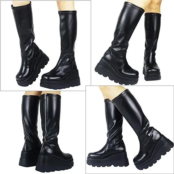 - > Estilo gótico botas de tornozelo de salto grosso motocicleta cavaleiro bota não sobre o joelho cabeça grande magro botas de tubo alto feminino 43 tamanho sapato de inverno