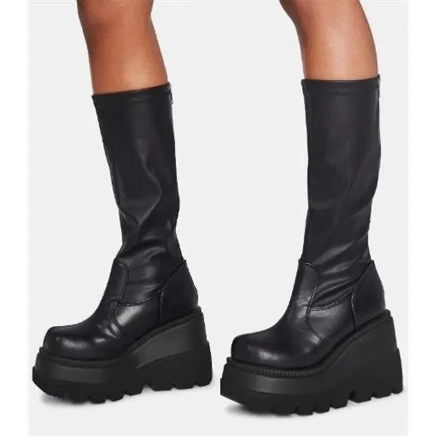 Estilo gótico botas de tornozelo de salto grosso motocicleta cavaleiro bota não sobre o joelho cabeça grande magro botas de tubo alto feminino 43 tamanho sapato de inverno