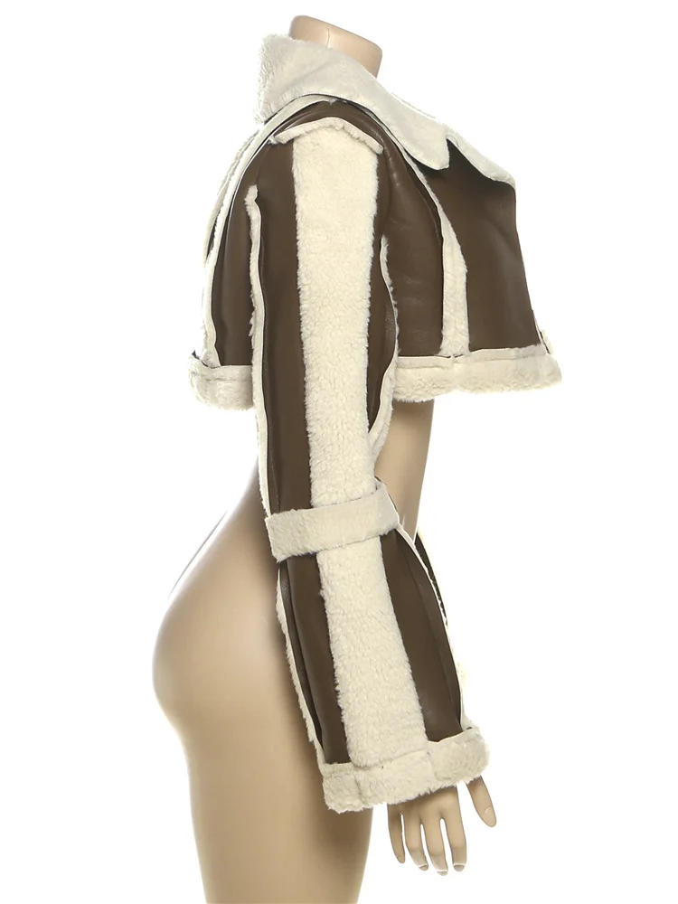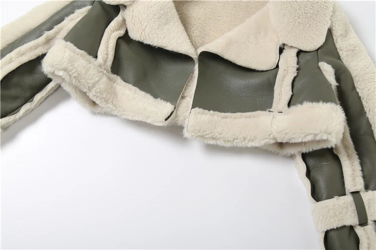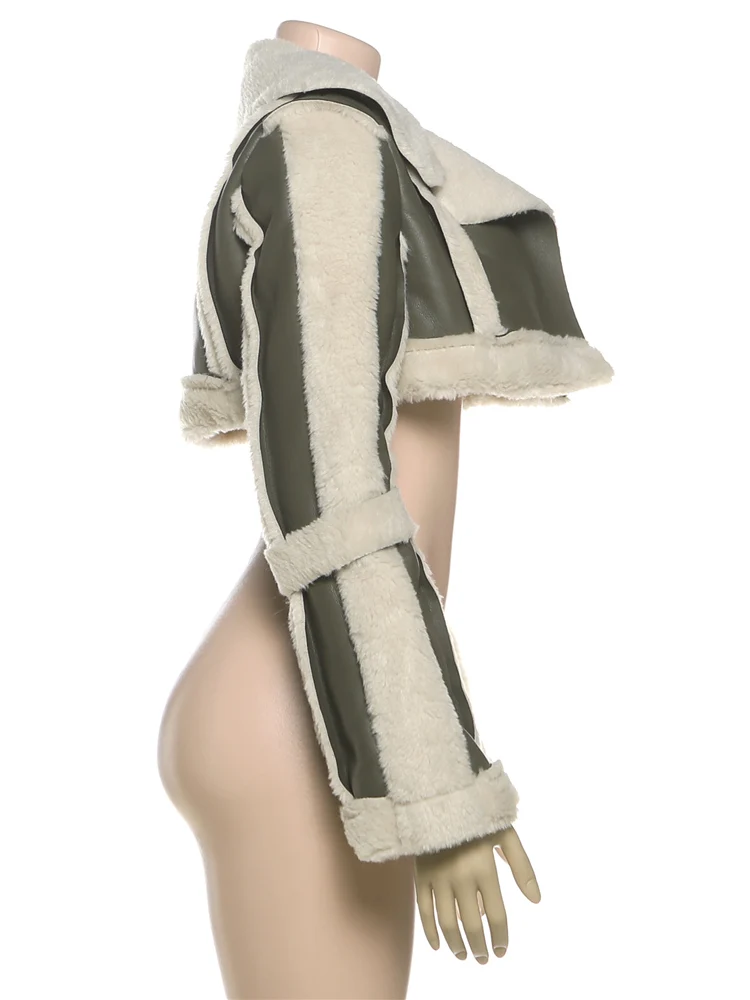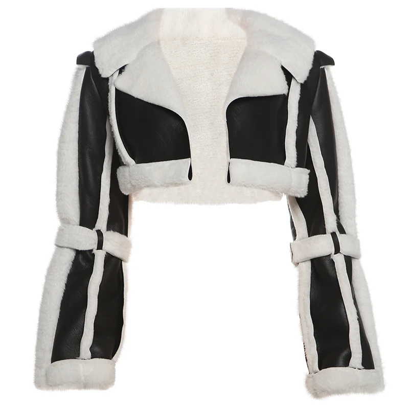 Estranho gato peludo retalhos jaqueta de colheita feminina hipster manga cheia ponto aberto hipster streetwear quente outwear básico casaco selvagem