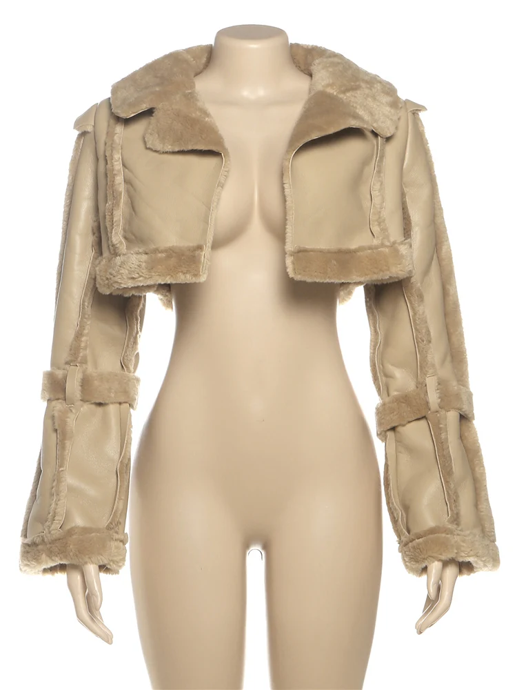 - > Estranho gato peludo retalhos jaqueta de colheita feminina hipster manga cheia ponto aberto hipster streetwear quente outwear básico casaco selvagem