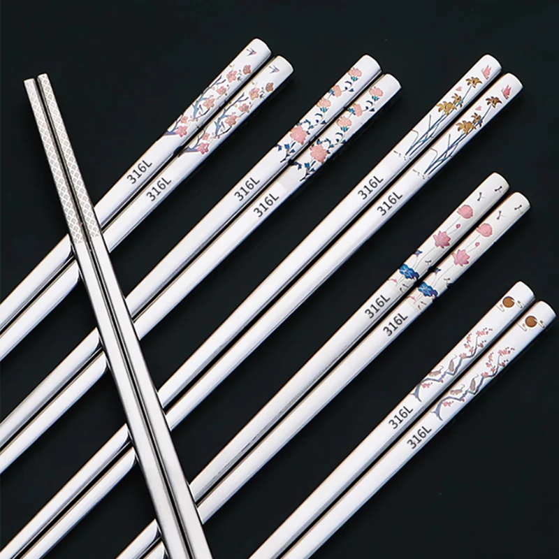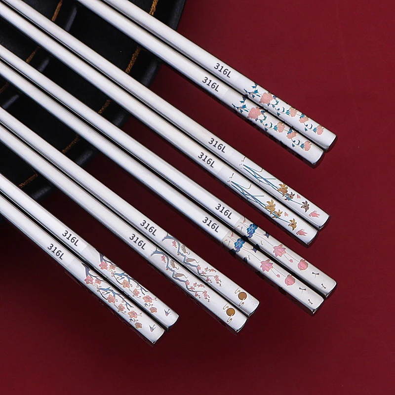 ?Excelente? Hashis Japoneses Antiderrapantes de Metal Inox 316 para Comida, Macarrão, Sushi, Utensílios de Mesa Laváveis na Máquina, Bar