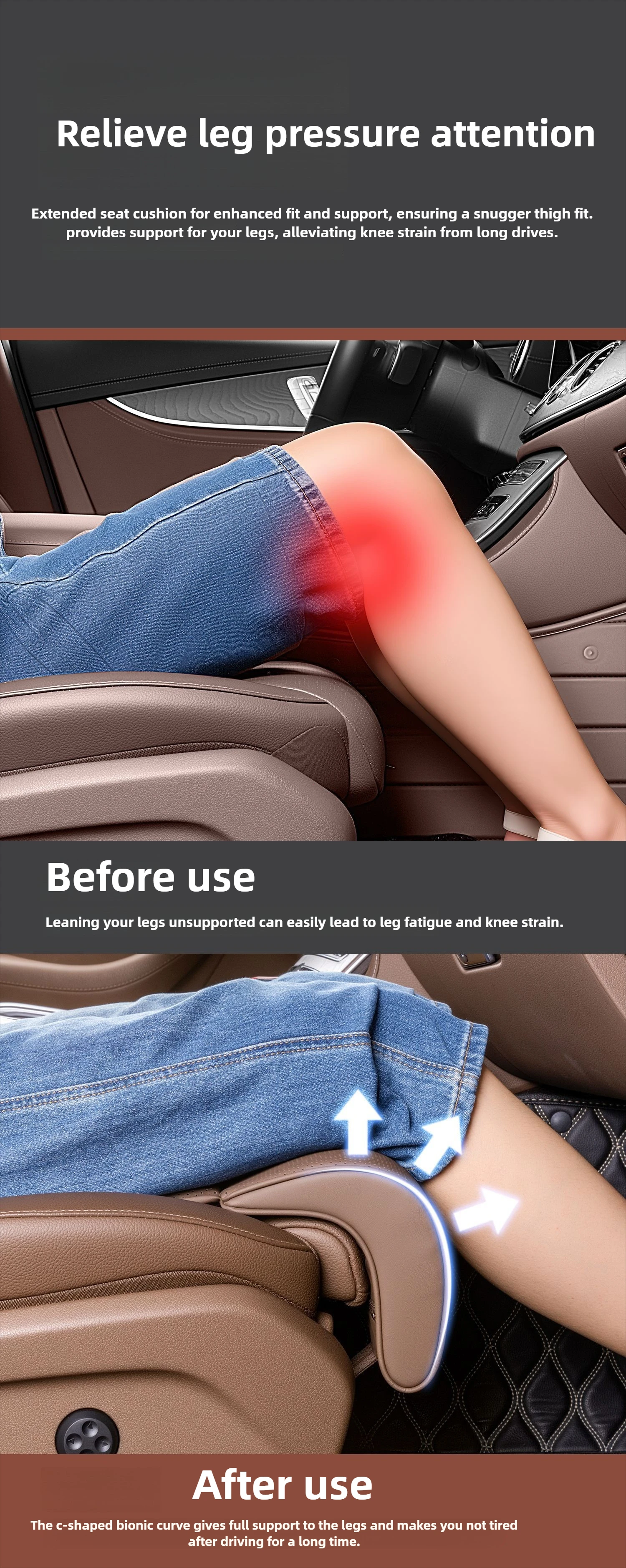 - > Extensor de suporte de perna de espuma de memória universal almofada de assento de carro camurça tapete de acolchoamento grosso para conforto do motorista assento de automóvel