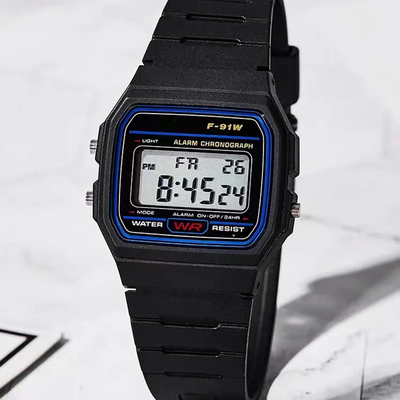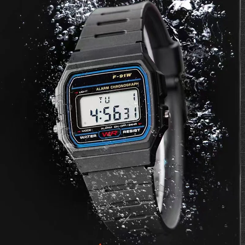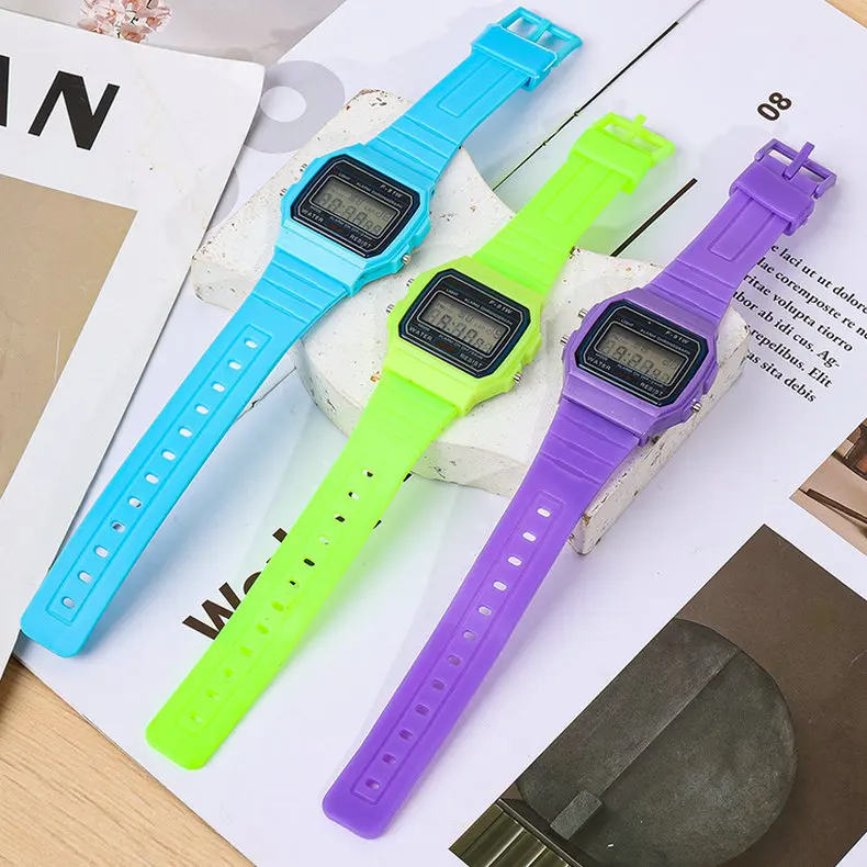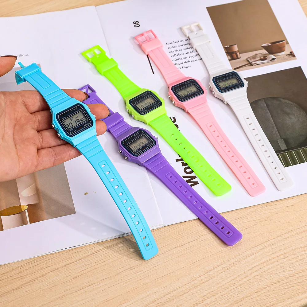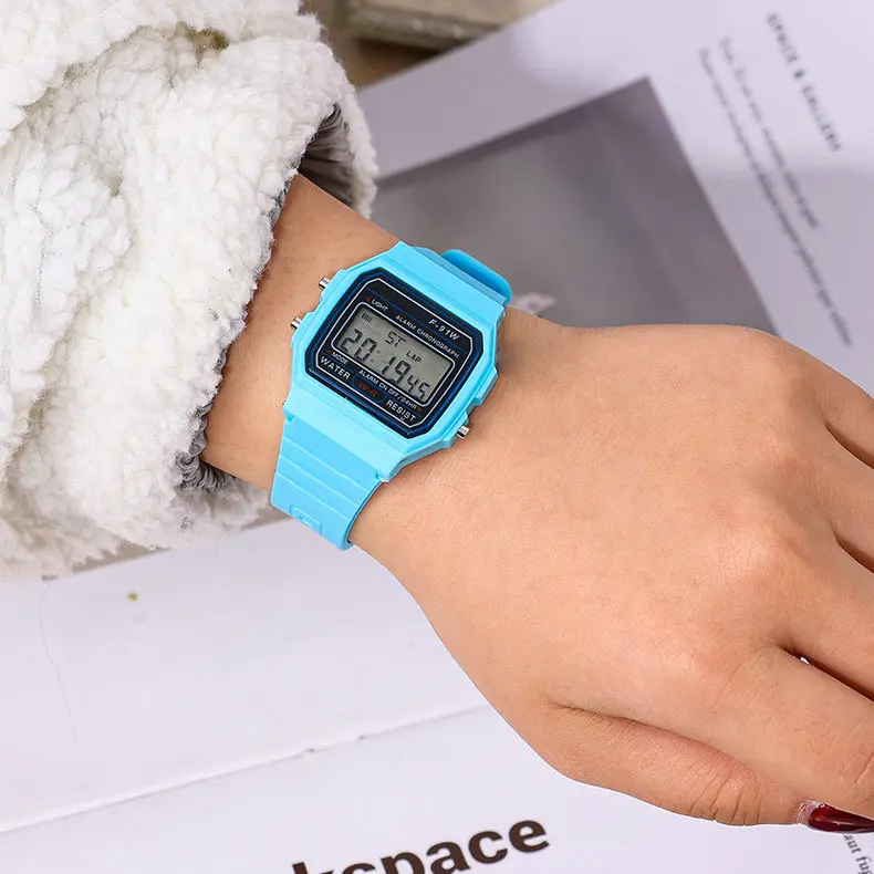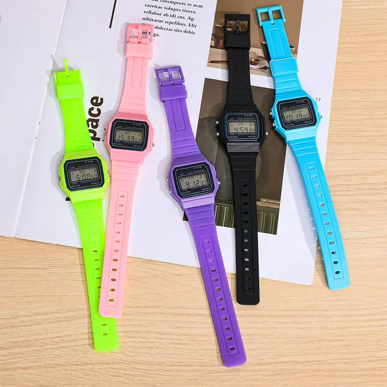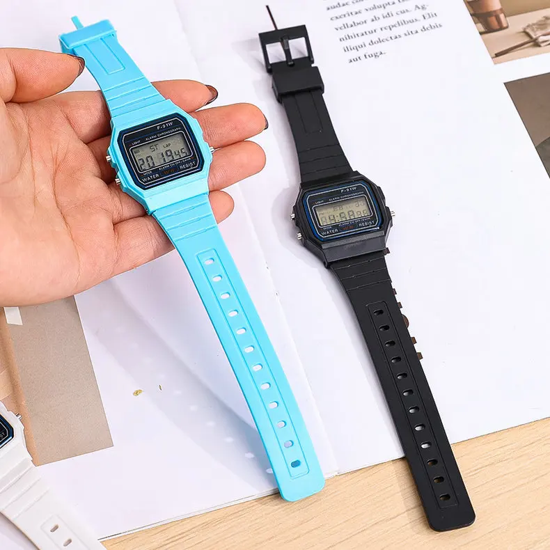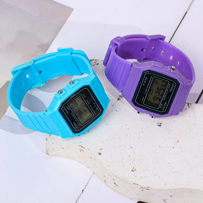 - > F91 vintage quadrado masculino e feminino estudante casal relógios silicone geléia ins vento led esportes à prova dwaterproof água 6 estilo relógio eletrônico