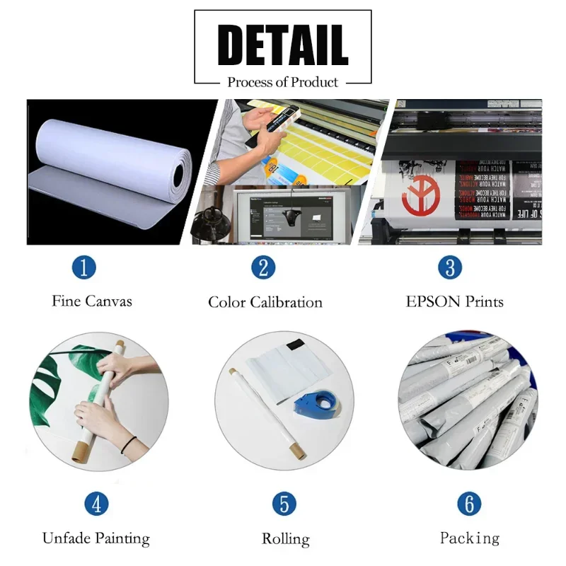 1.Nossos produtos são feitos de telas e outros materiais da mais alta qualidade.Material espesso, resistente e impermeável.O pôster tem cores vivas e não desaparece.Todos os produtos são impressos profissionalmente em telas com destaques impermeáveis de alta qualidade.Para garantir cores brilhantes e durabilidade, a tinta que escolhemos é uma tinta pigmentada ecológica e de alta qualidade, mas é normal que todos os produtos impressos tenham um leve odor de tinta.Perfeito para decoração de casa, decoração de quarto infantil, decoração de sala de estar, presente.