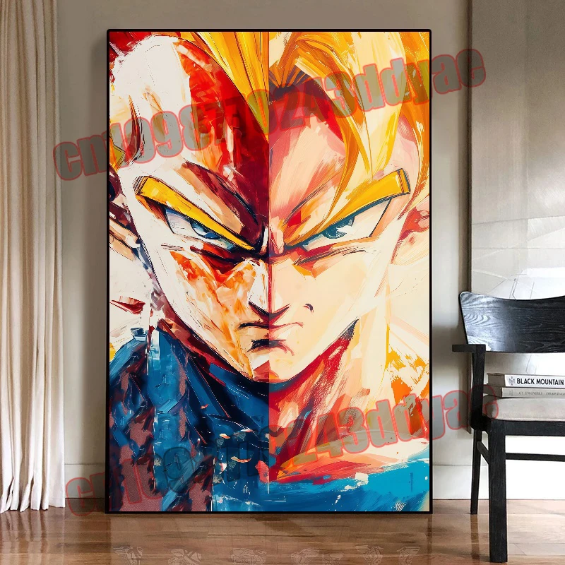 - > Famoso clássico de sangue quente anime dragon ball, goku vegeta, impressão de pôster pintura em tela casa criativa decoração de parede mural