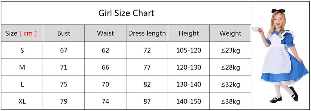 Fantasia de Halloween para Meninas, Vestido de Alice no País das Maravilhas, Fantasia de Cosplay para Festa Infantil