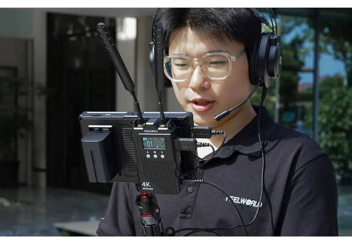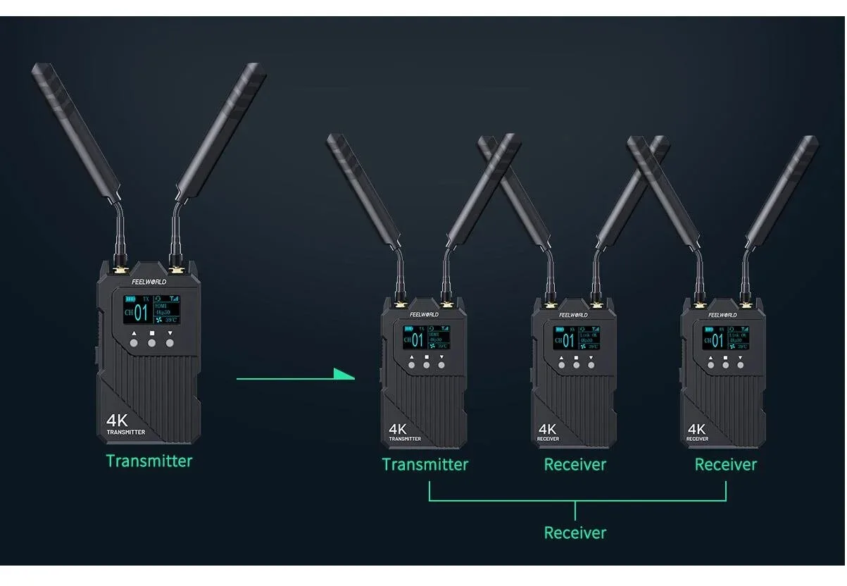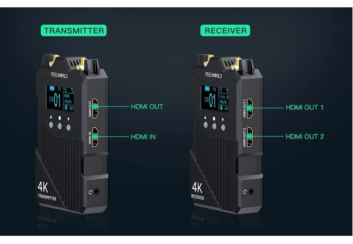 - > Feelworld wt1h 4k sistema de transmissão de vídeo sem fio duplo hdmi-compatível full duplex intercom streaming ao vivo