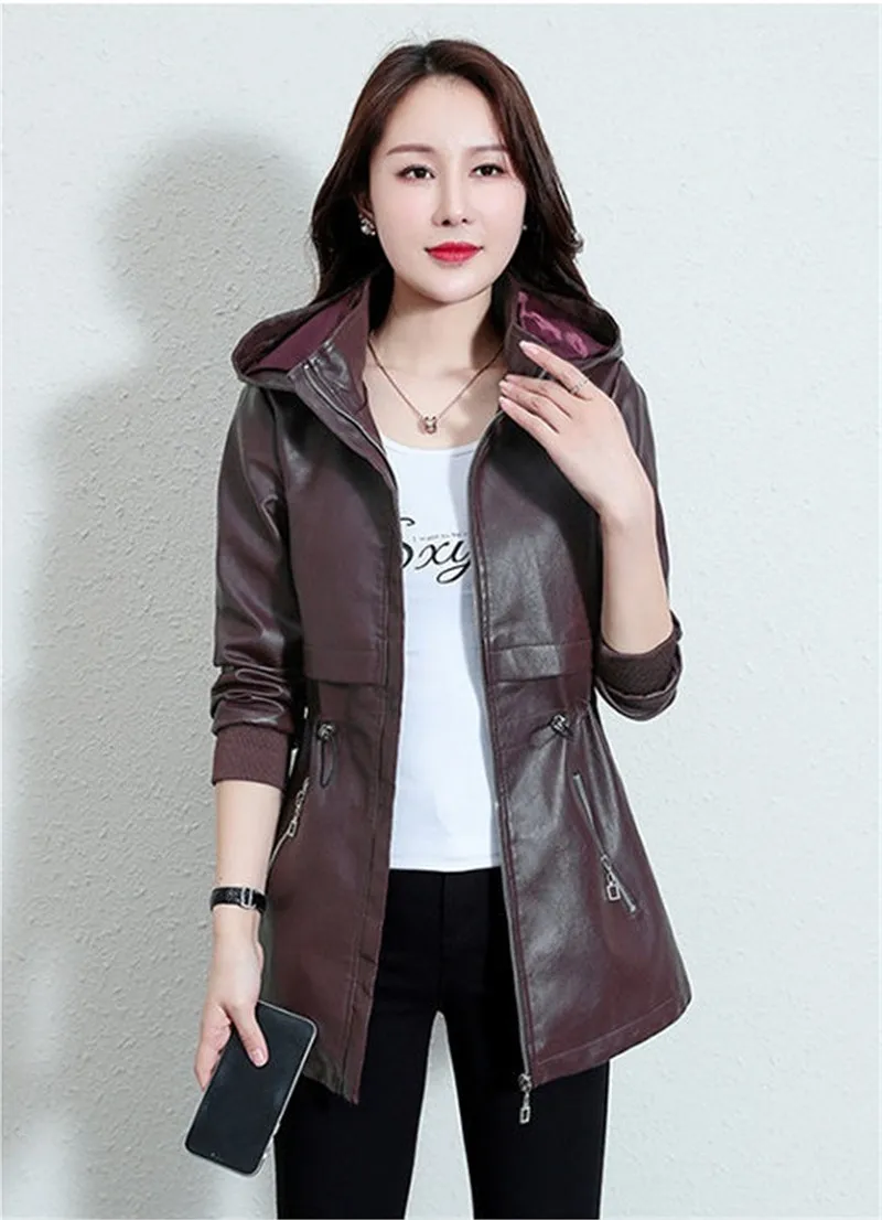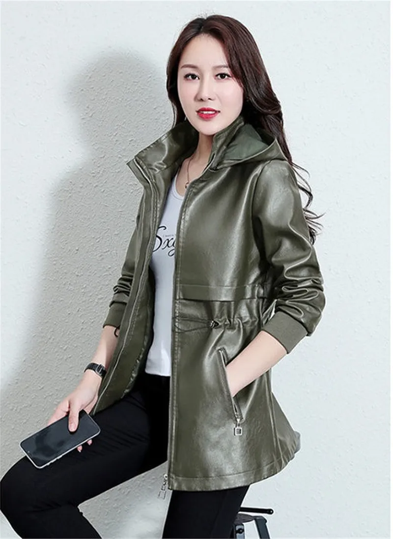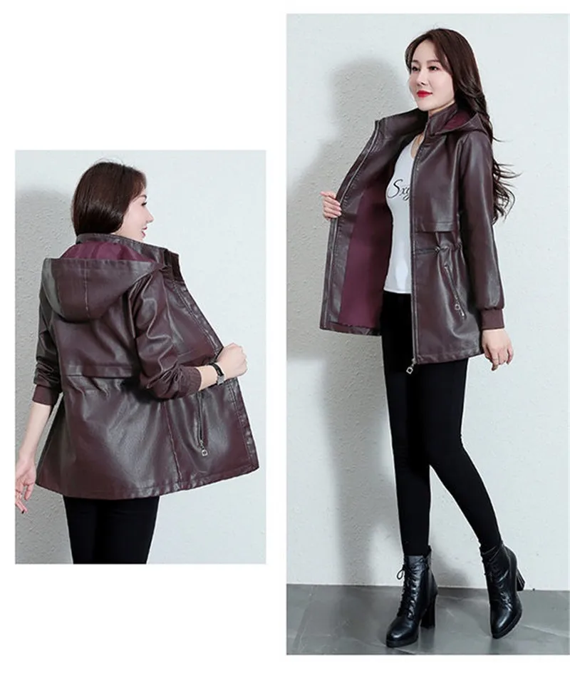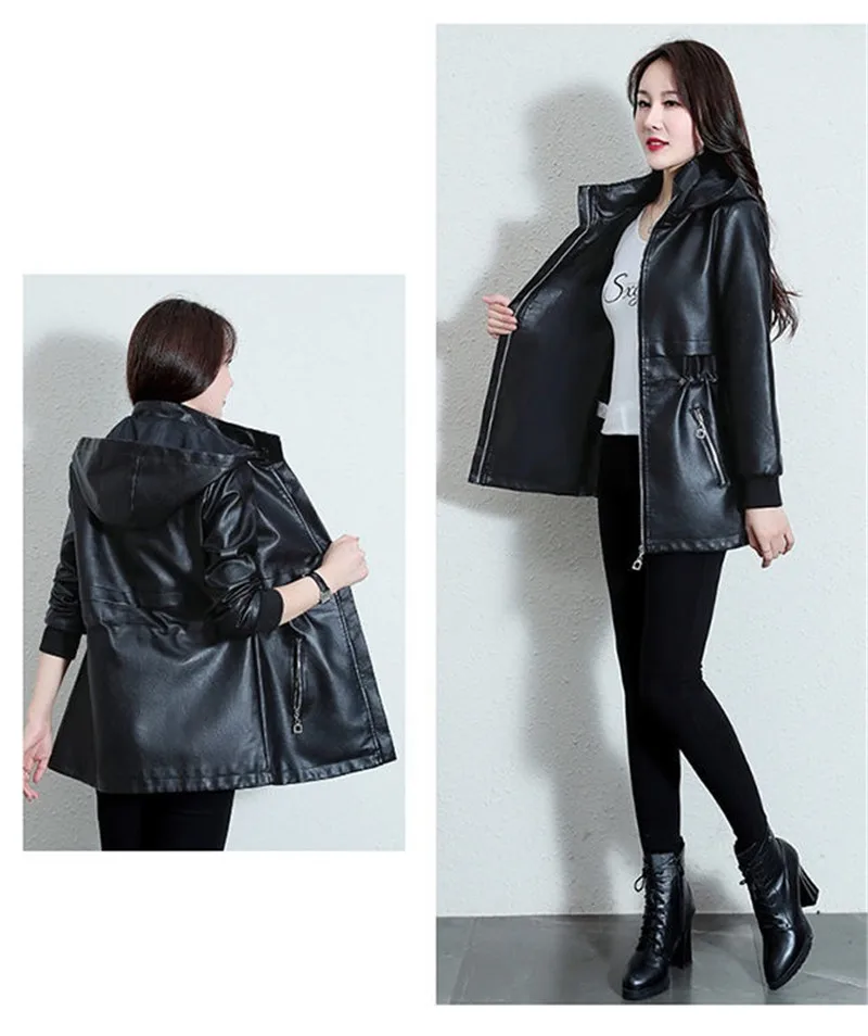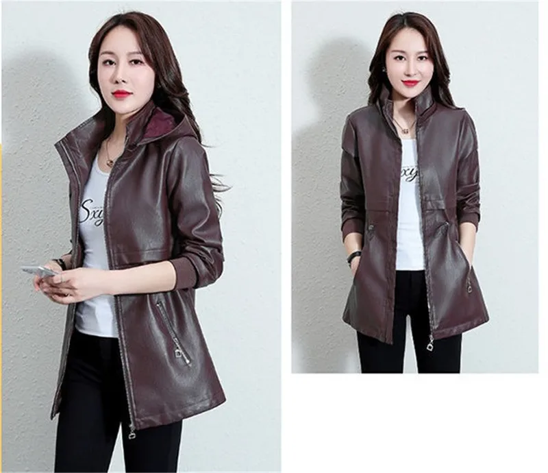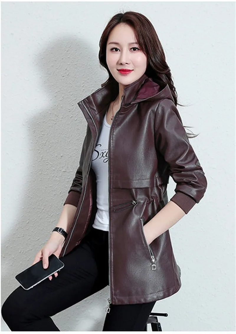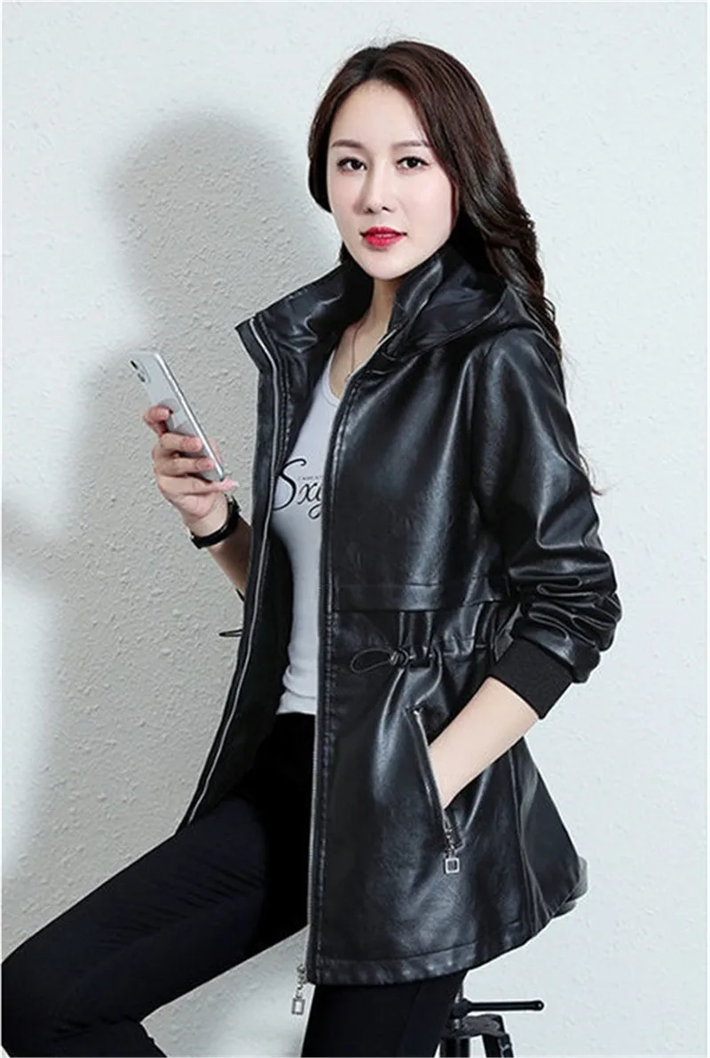 - > Feminino tamanho grande jaqueta de couro do plutônio 20201 outono inverno com capuz falso casaco de couro feminino inverno adicionar veludo quente casacos 4xlc1609