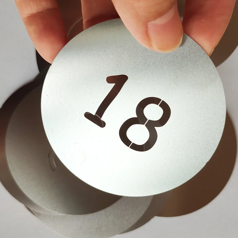 Folha de metal de projeção de algarismos arábicos com inserção de aço inoxidável de 60 mm