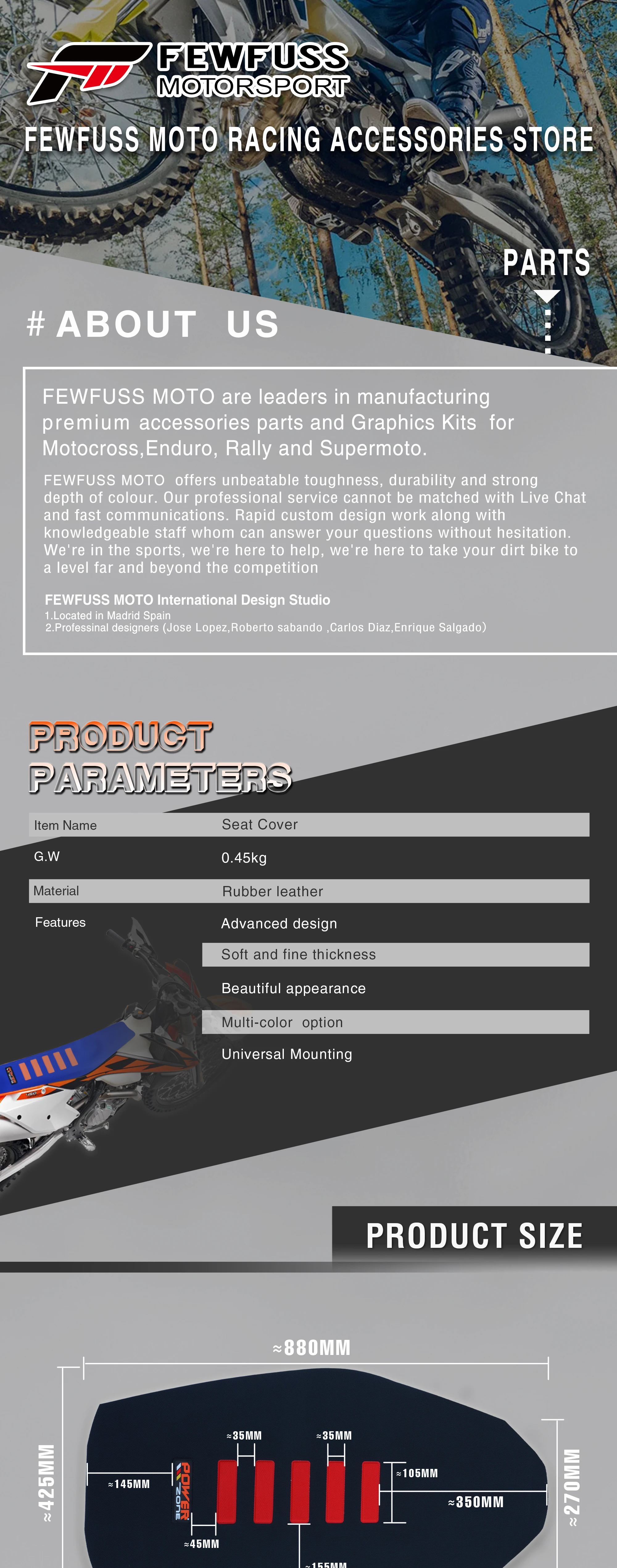 Fewfuss capa de assento da motocicleta almofadas pele bask em conjunto à prova dwaterproof água proteção antiderrapante chateado aplicar para ktm sxf kxf crf