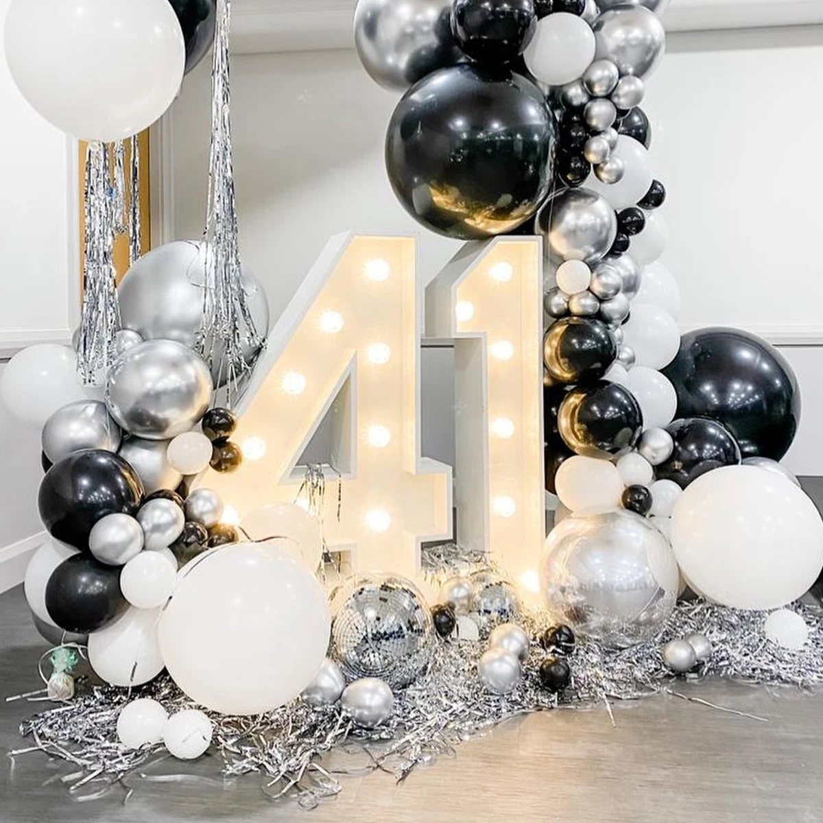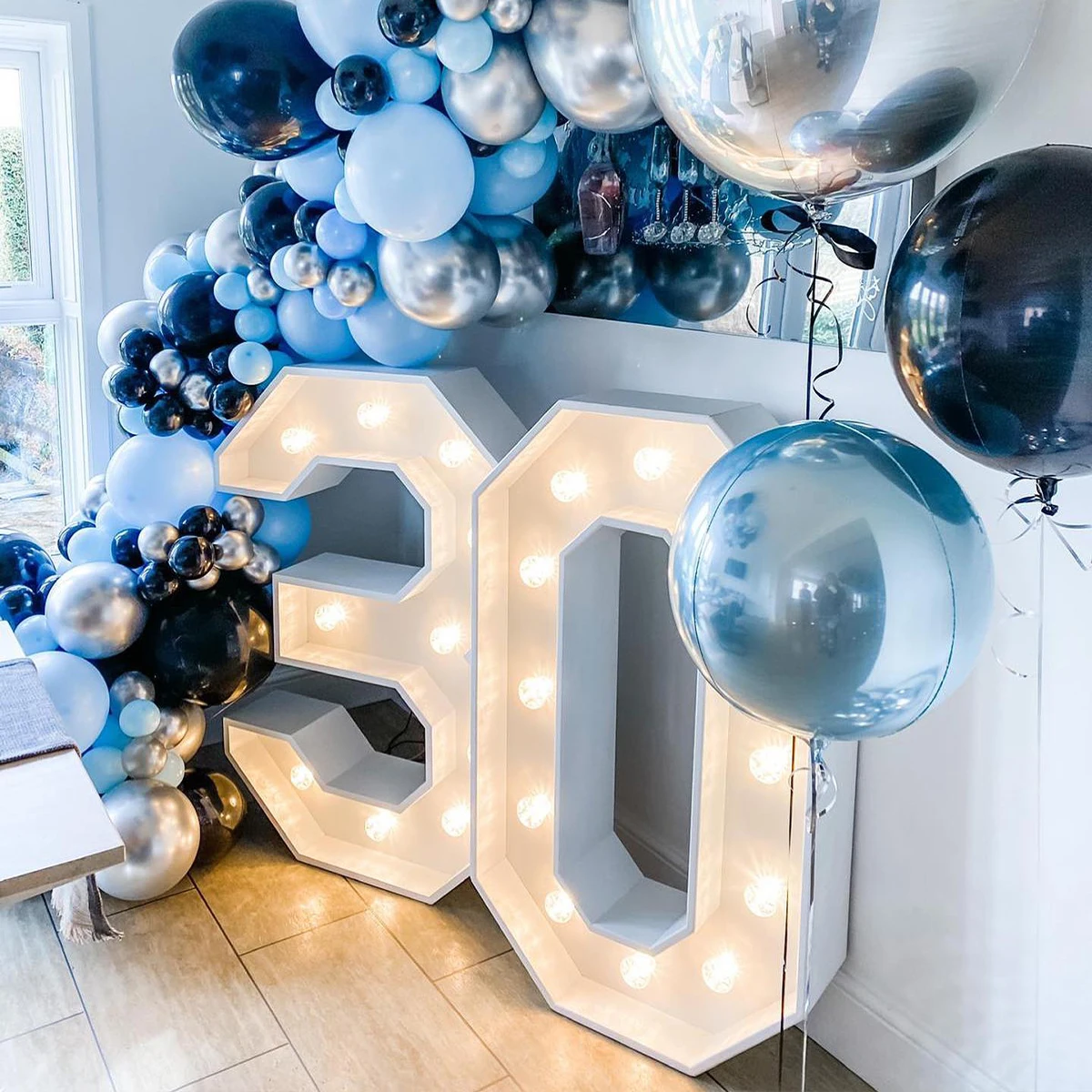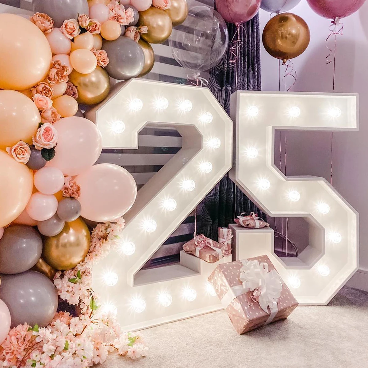 Figura gigante de aniversário de 91,5 cm com 10 luzes lâmpada de número luminoso 30 40 50 moldura de número de aniversário caixa de enchimento de balão de chá de bebê