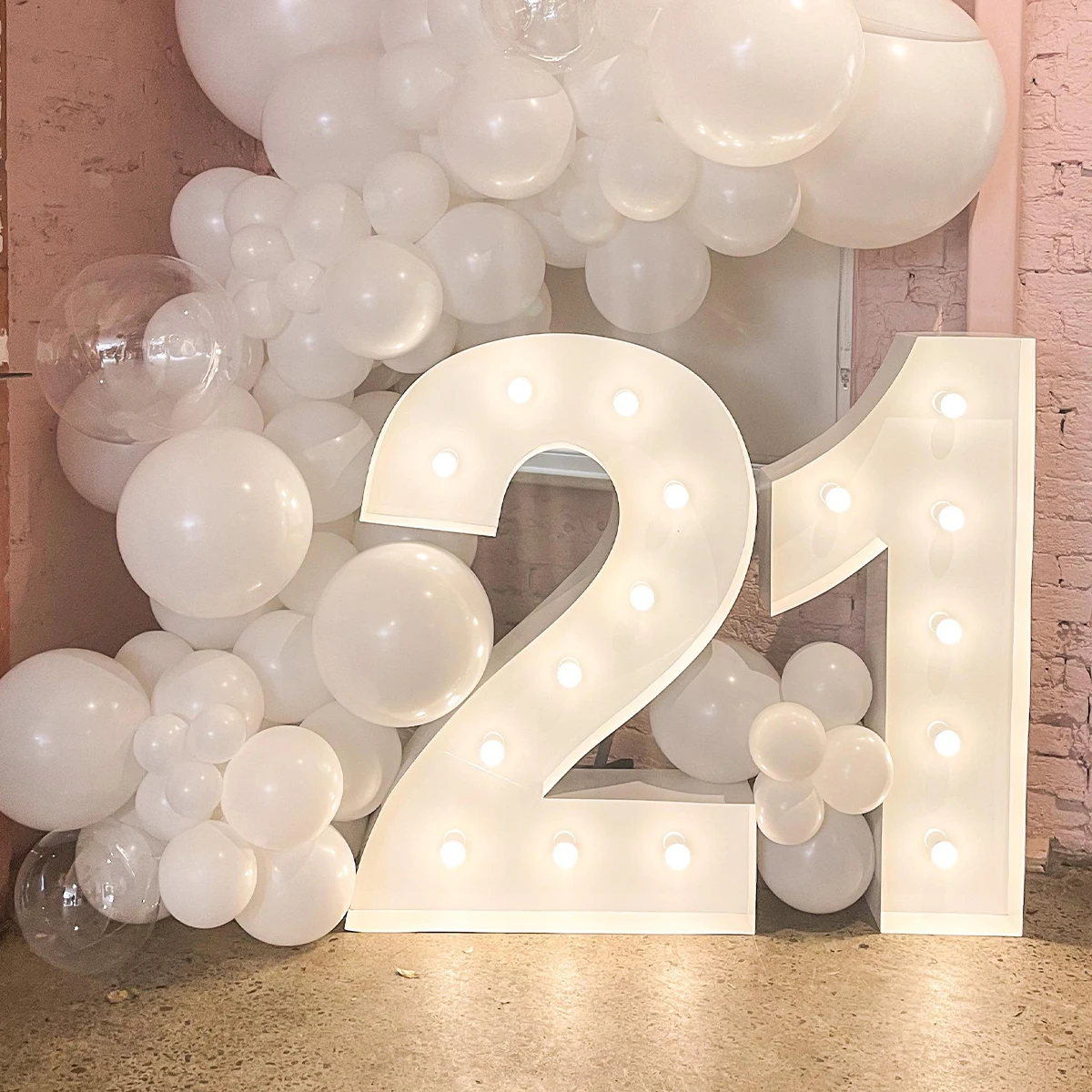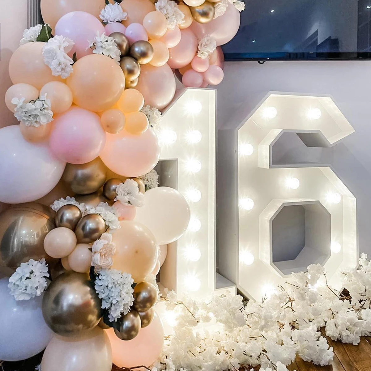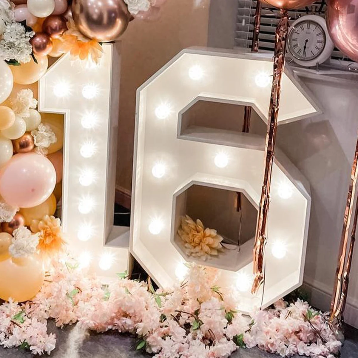 Figura gigante de aniversário de 91,5 cm com 10 luzes lâmpada de número luminoso 30 40 50 moldura de número de aniversário caixa de enchimento de balão de chá de bebê
