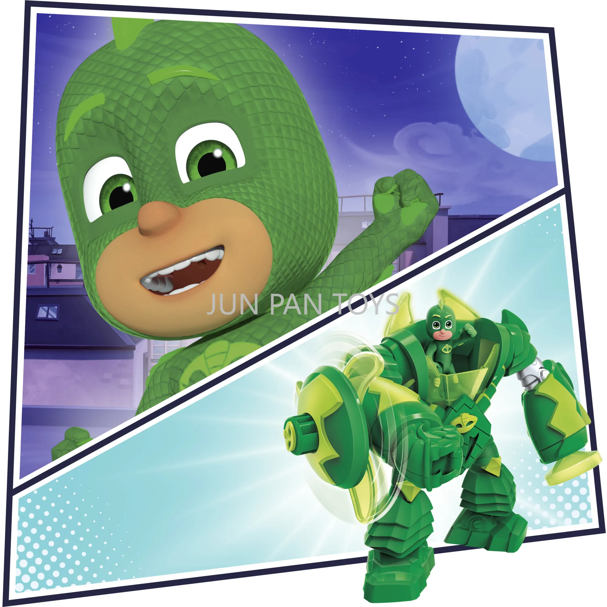 AÇÃO SUPER GEKKO: Os braços do brinquedo Robo-Gekko são equipados com um escudo giratório ativado por botão e uma ventosa extensível para que as crianças possam recriar suas cenas favoritas do programa